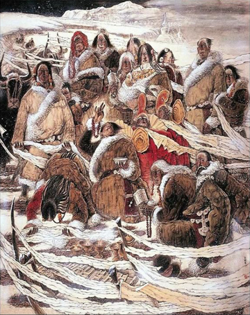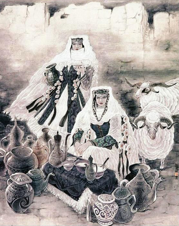 刘选让 人物画《帕米尔晨曲》68x68cm