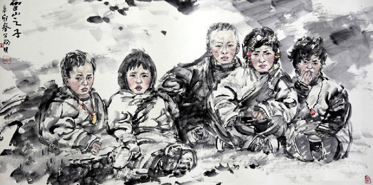 杨明 人物画《雪山之子》 68x136cm