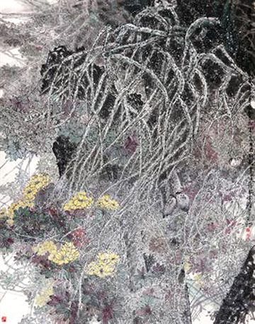辛守庆 花鸟画《白山五月》 84x153cm2