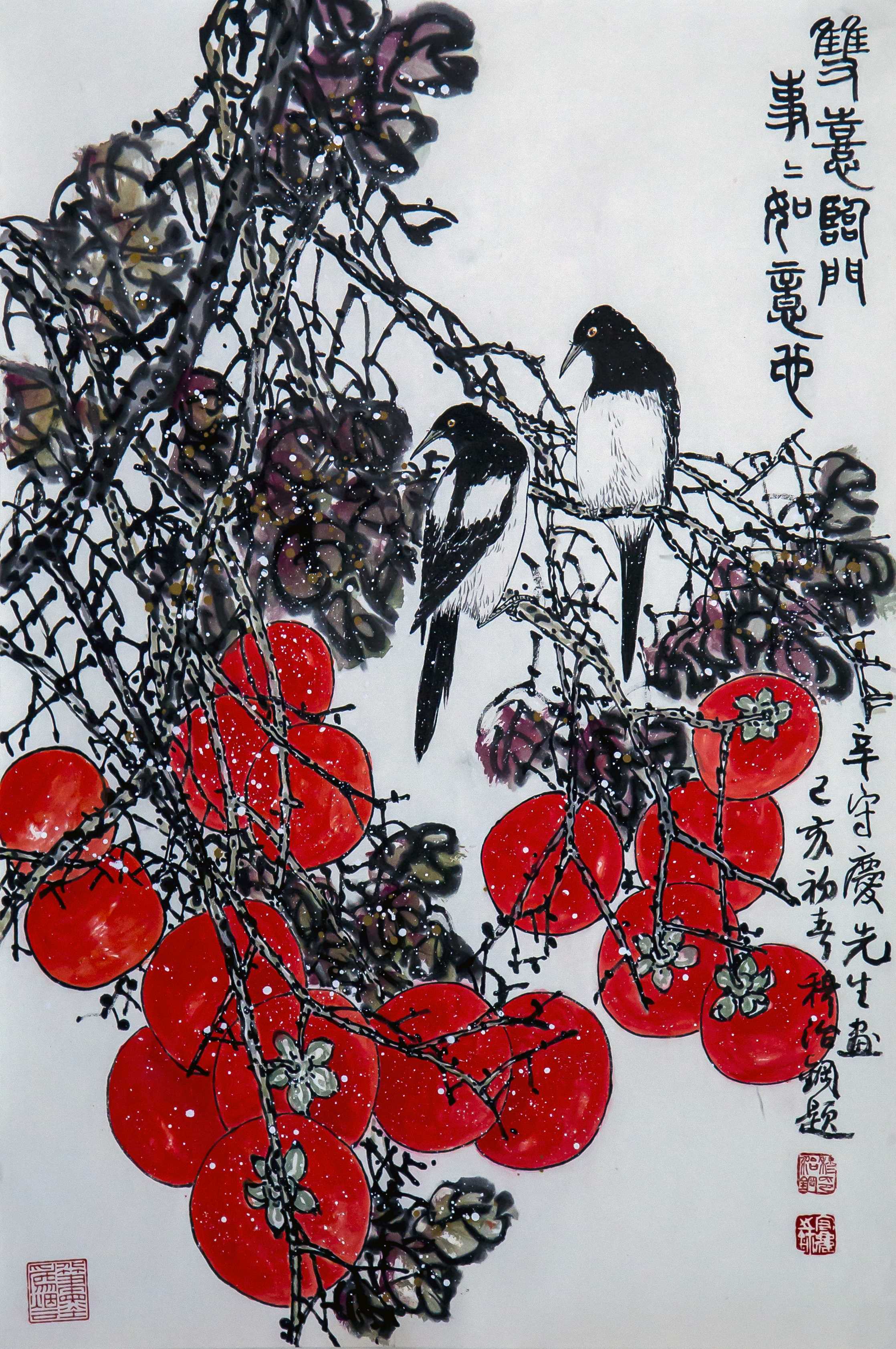 名家书画:辛守庆 花鸟画《双喜临门》