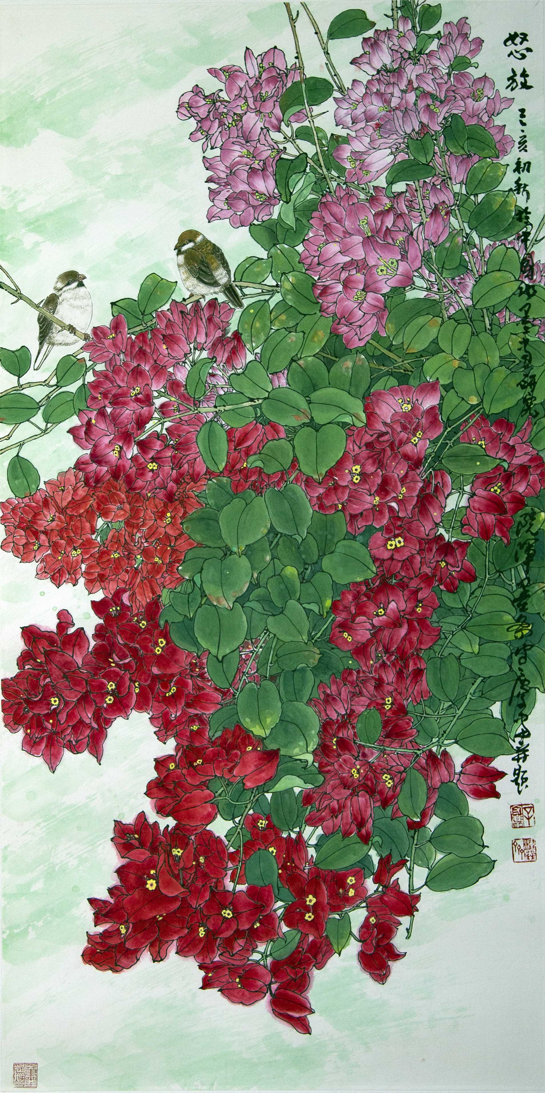 名家书画:辛守庆 花鸟画《繁花似锦》