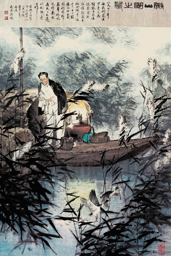 沈启鹏 人物画《微山湖之晨》 200cm×98cm