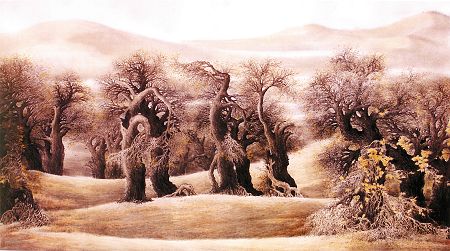 曹广福 山水画《大漠近秋叶正黄》 68x136cm