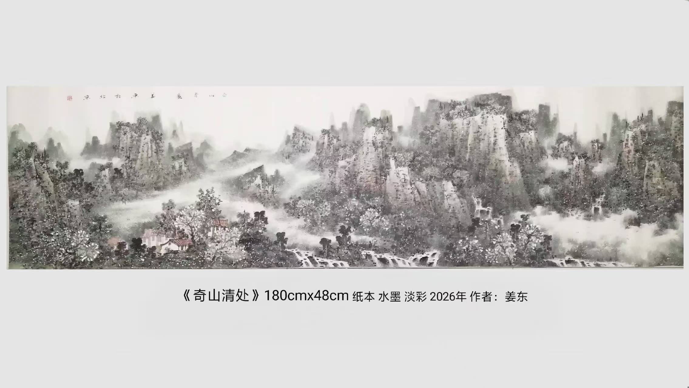 名家书画:姜东 山水画《奇山清处》180cmx48cm