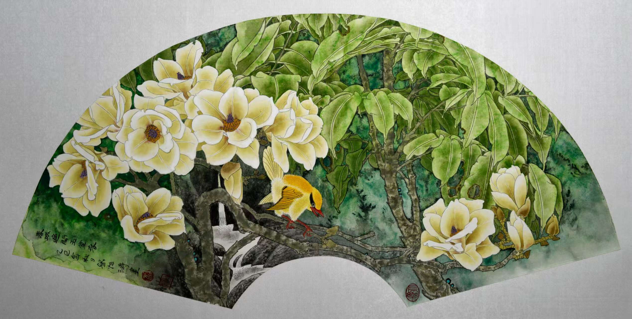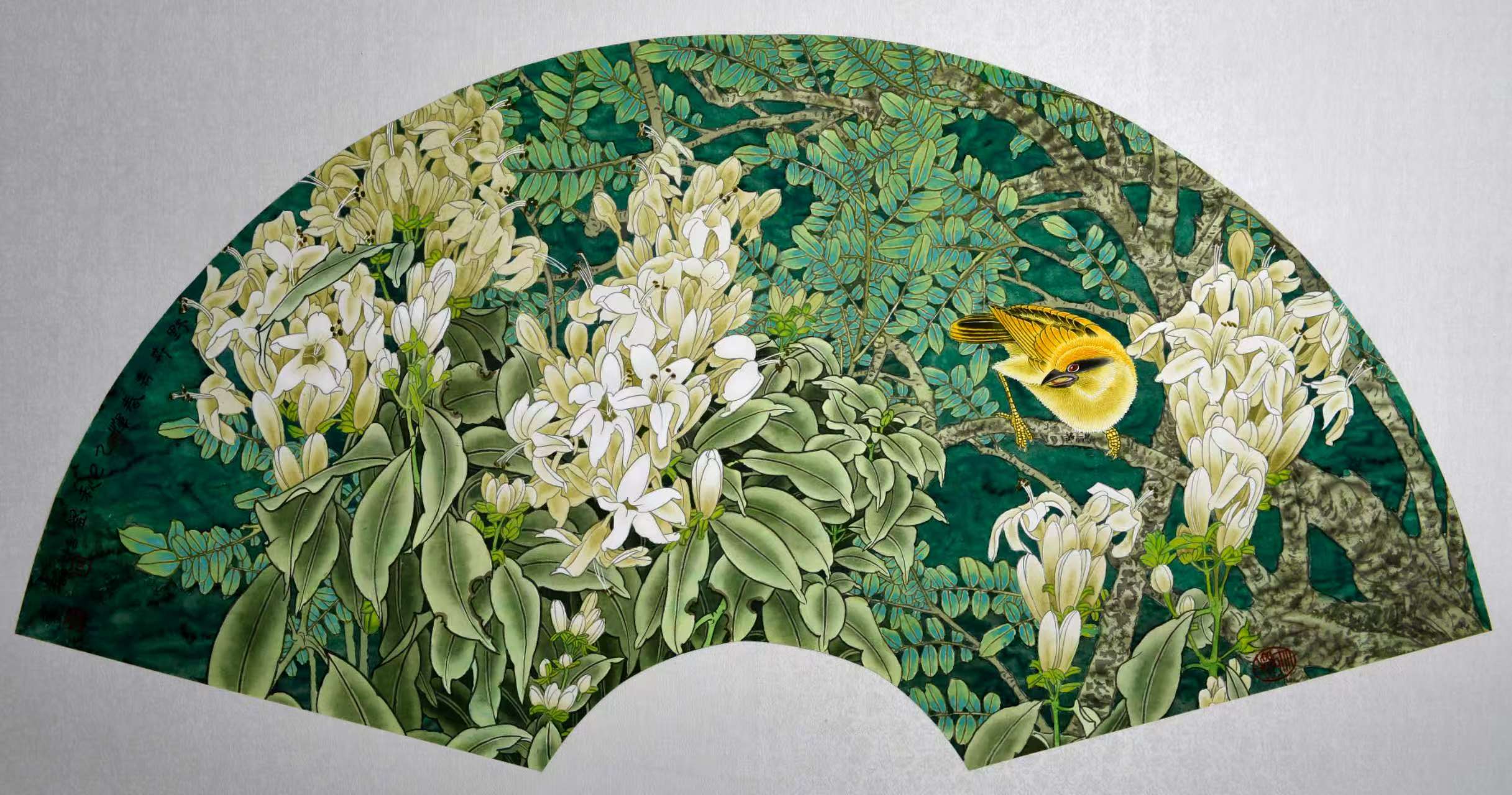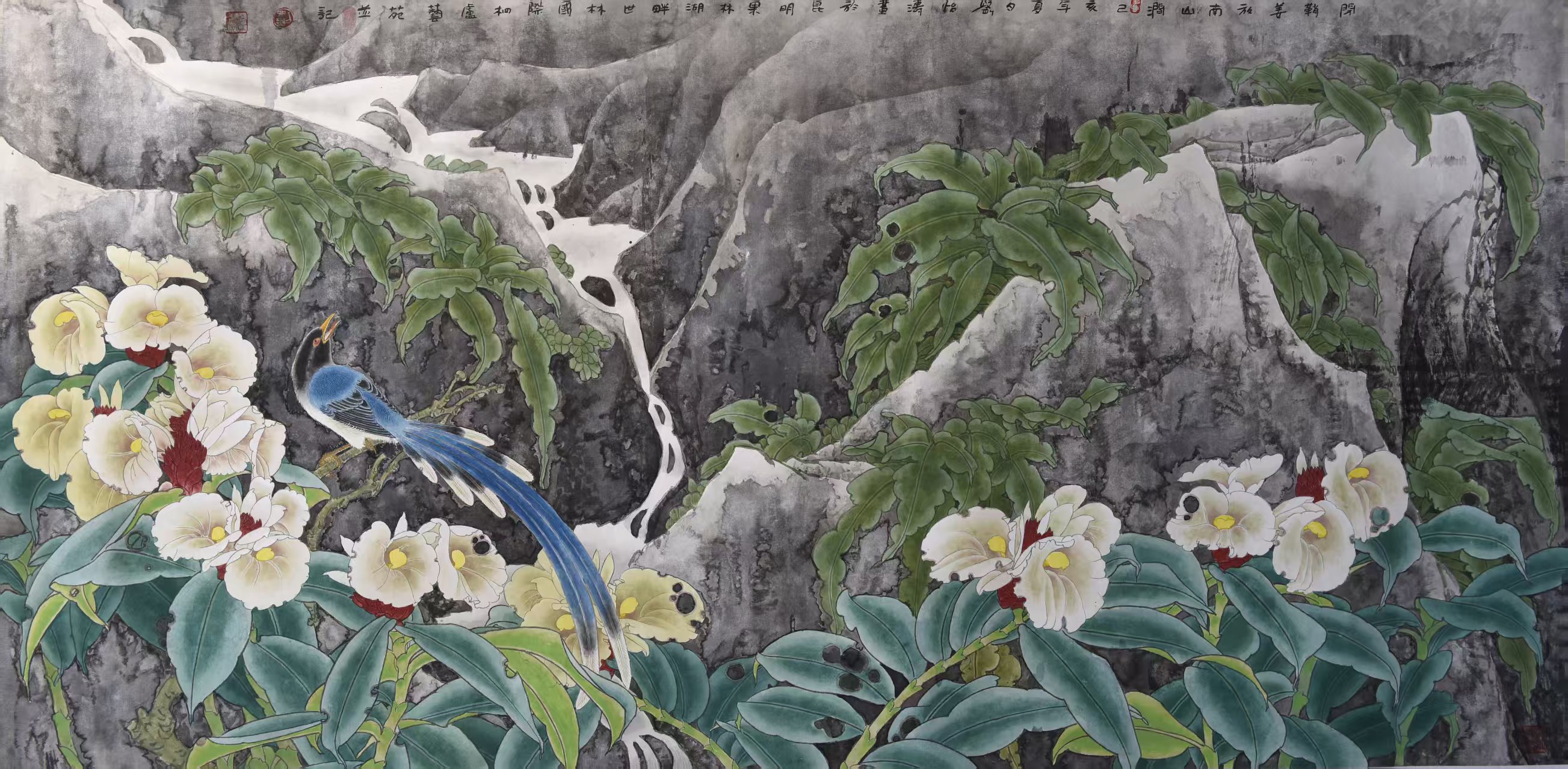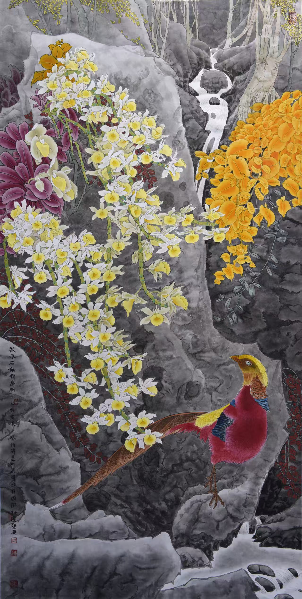 名家书画:刘怡涛 工笔花鸟作品 132x66cm
