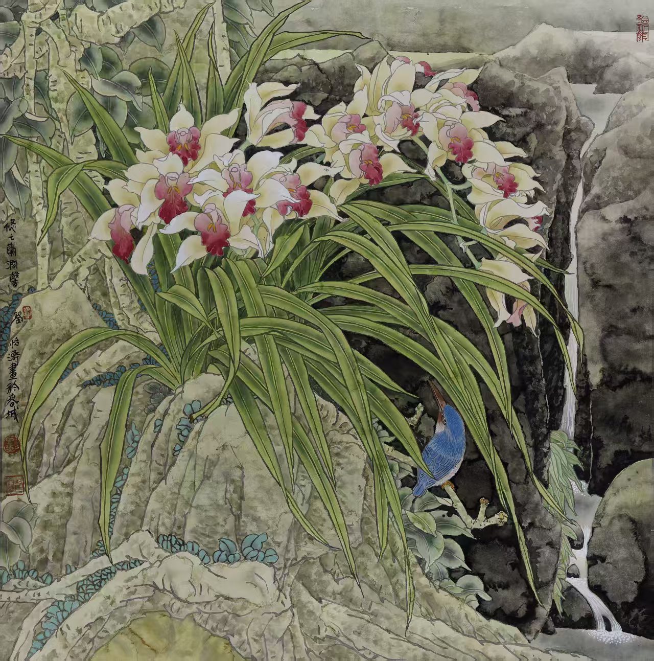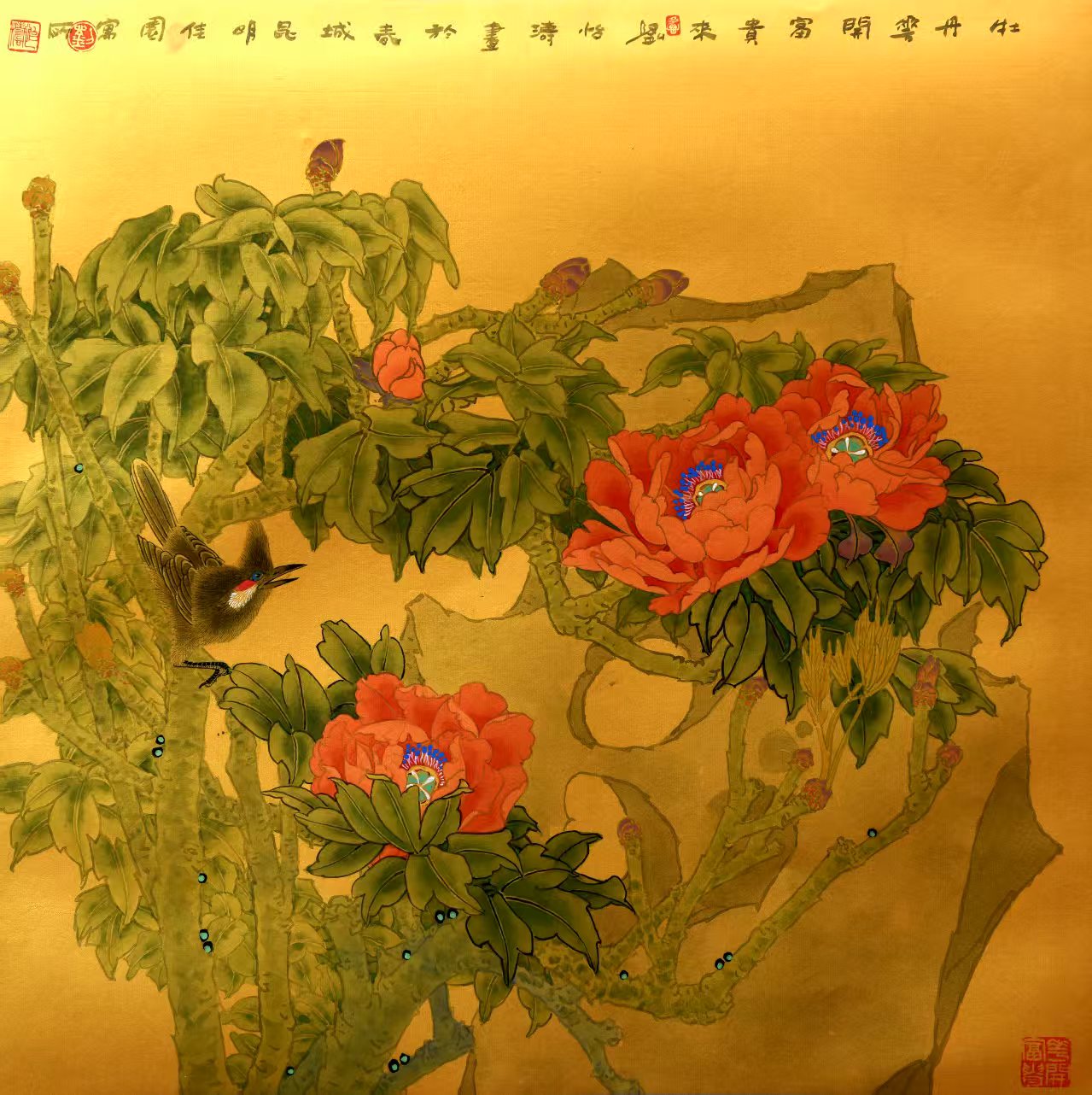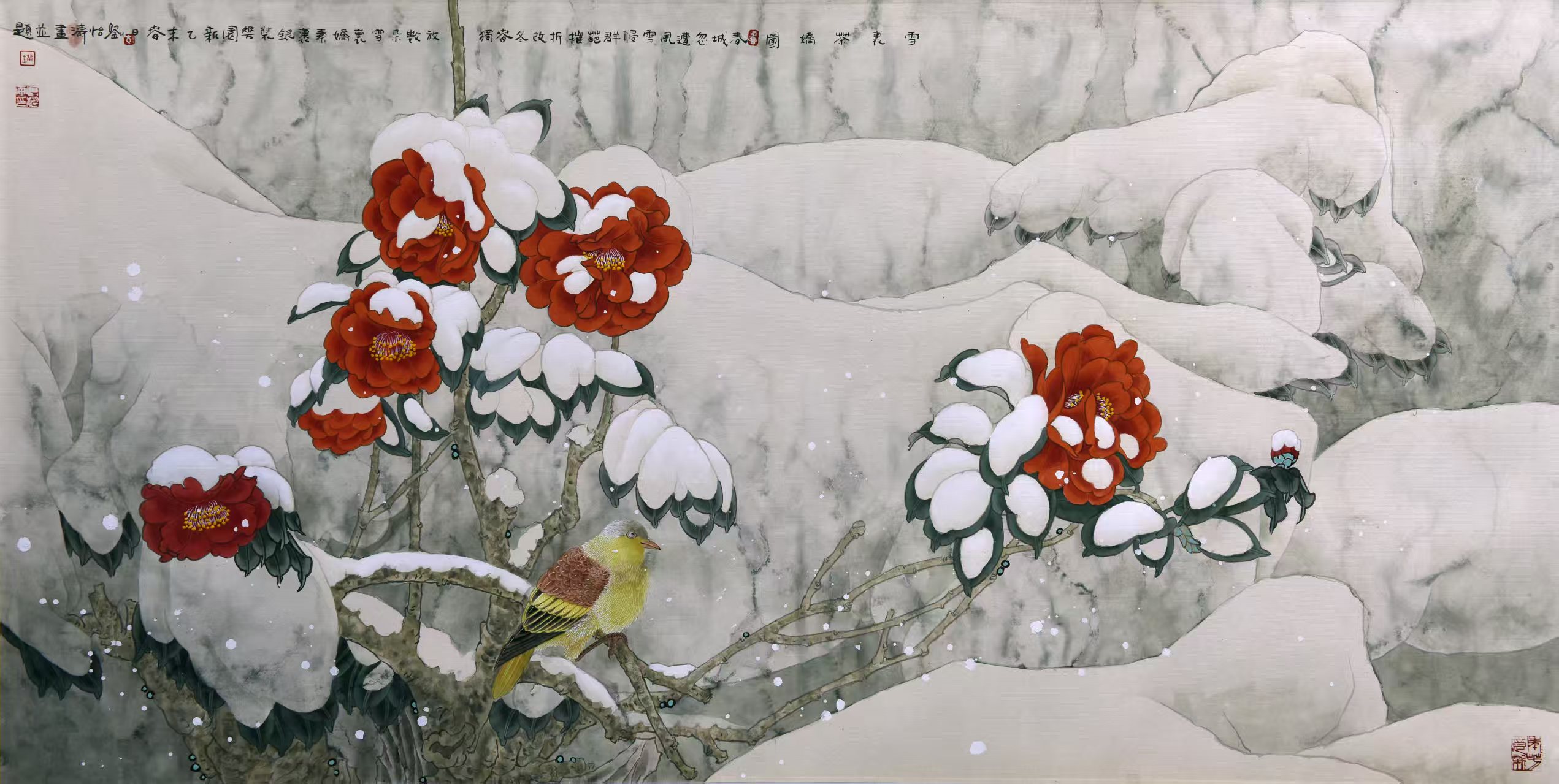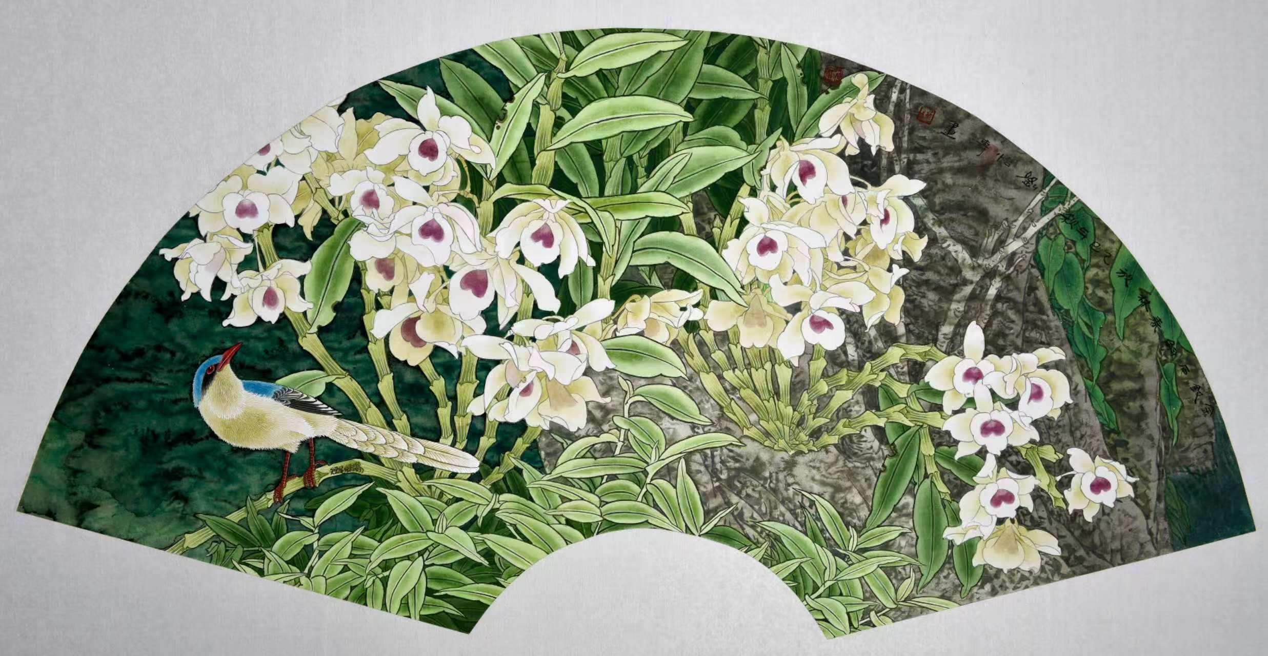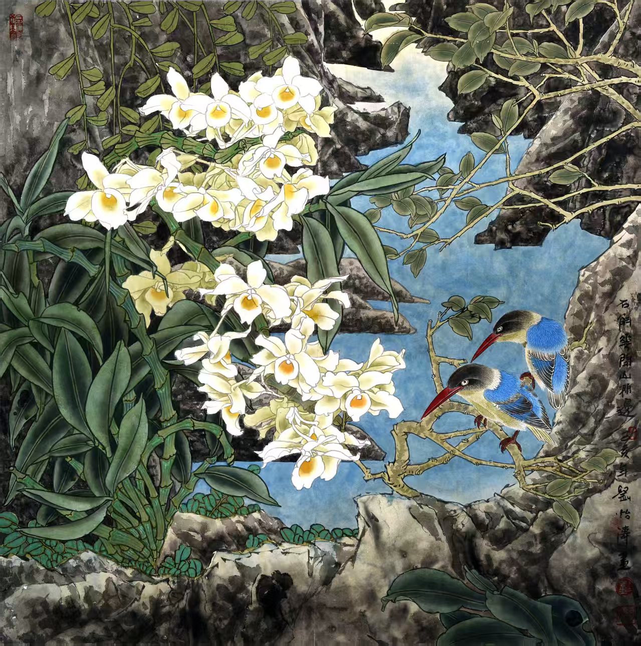 名家书画:刘怡涛 工笔花鸟作品 132x66cm