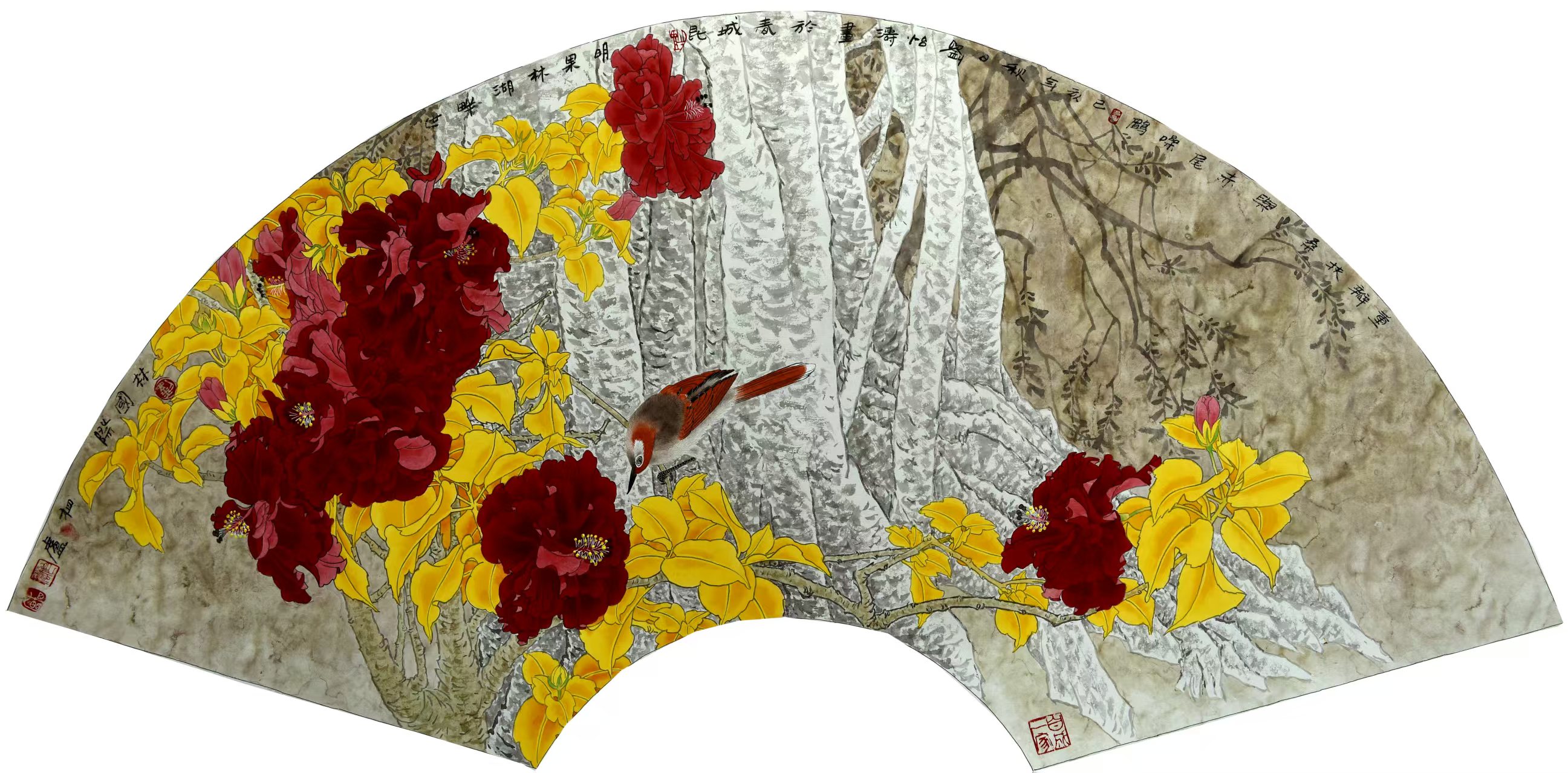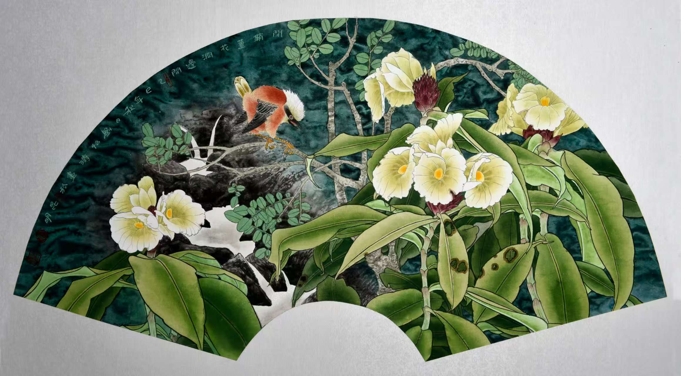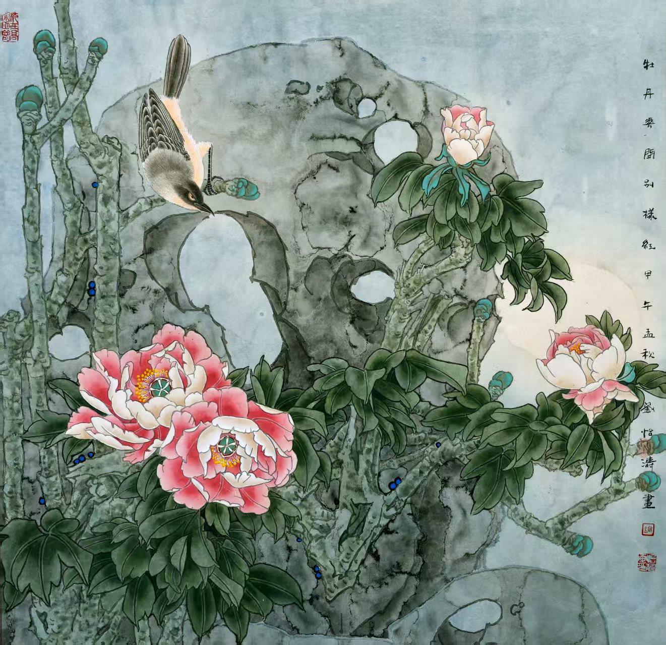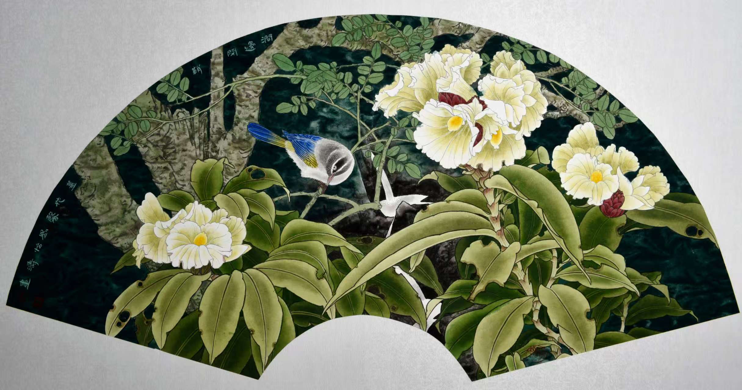 名家书画:刘怡涛 工笔花鸟作品 132x66cm
