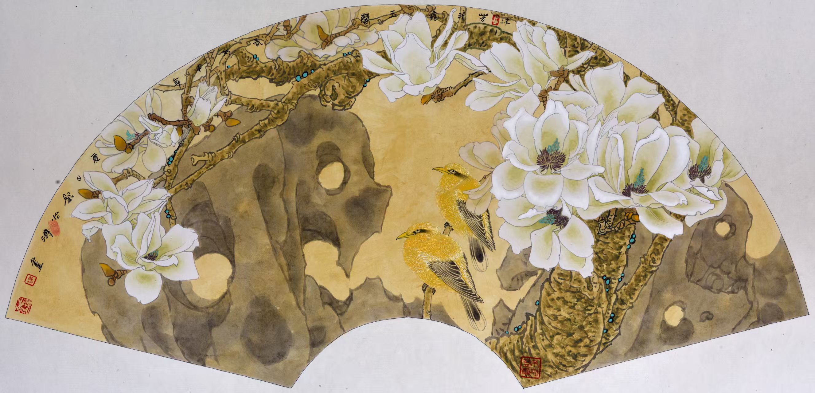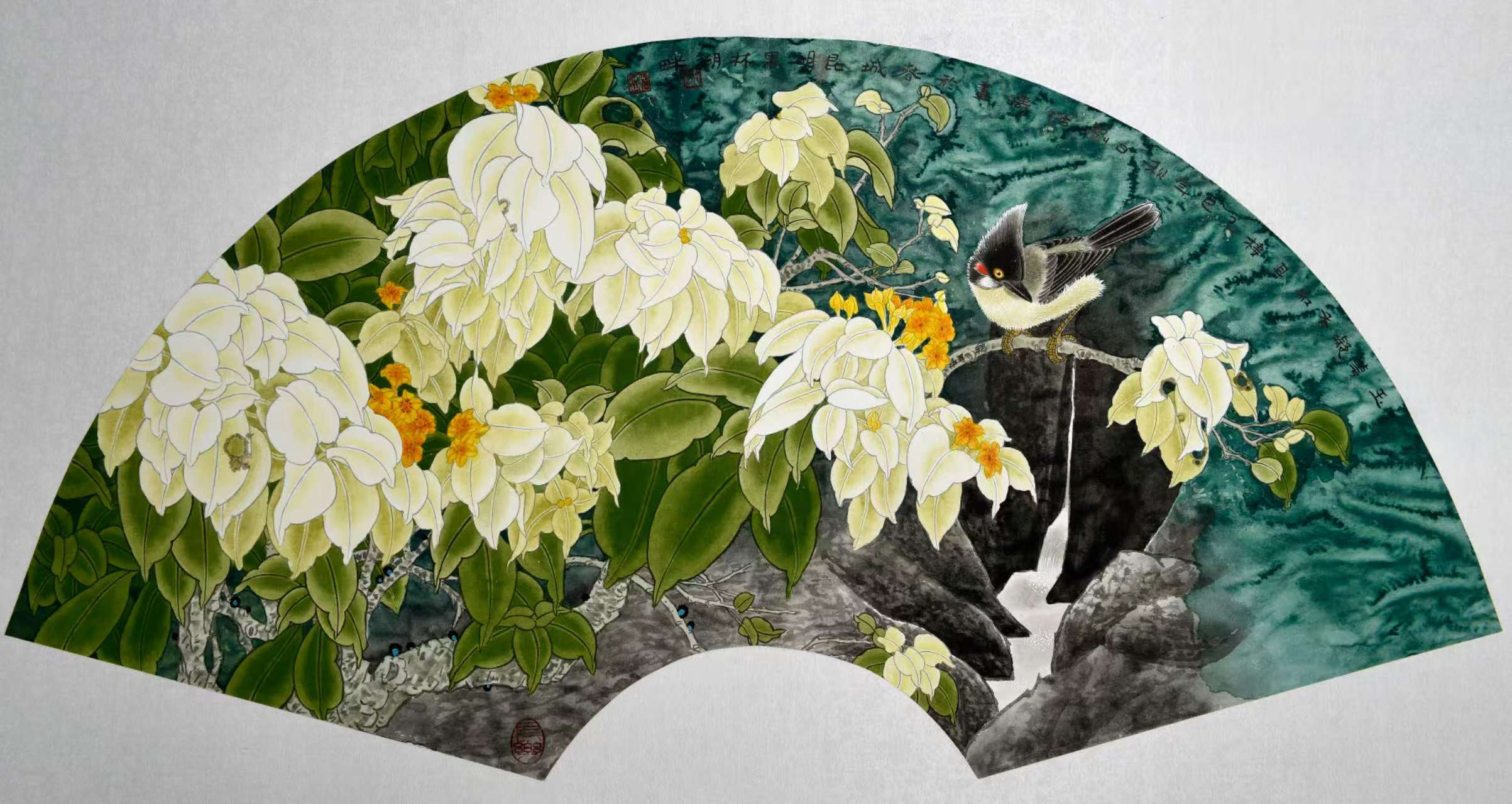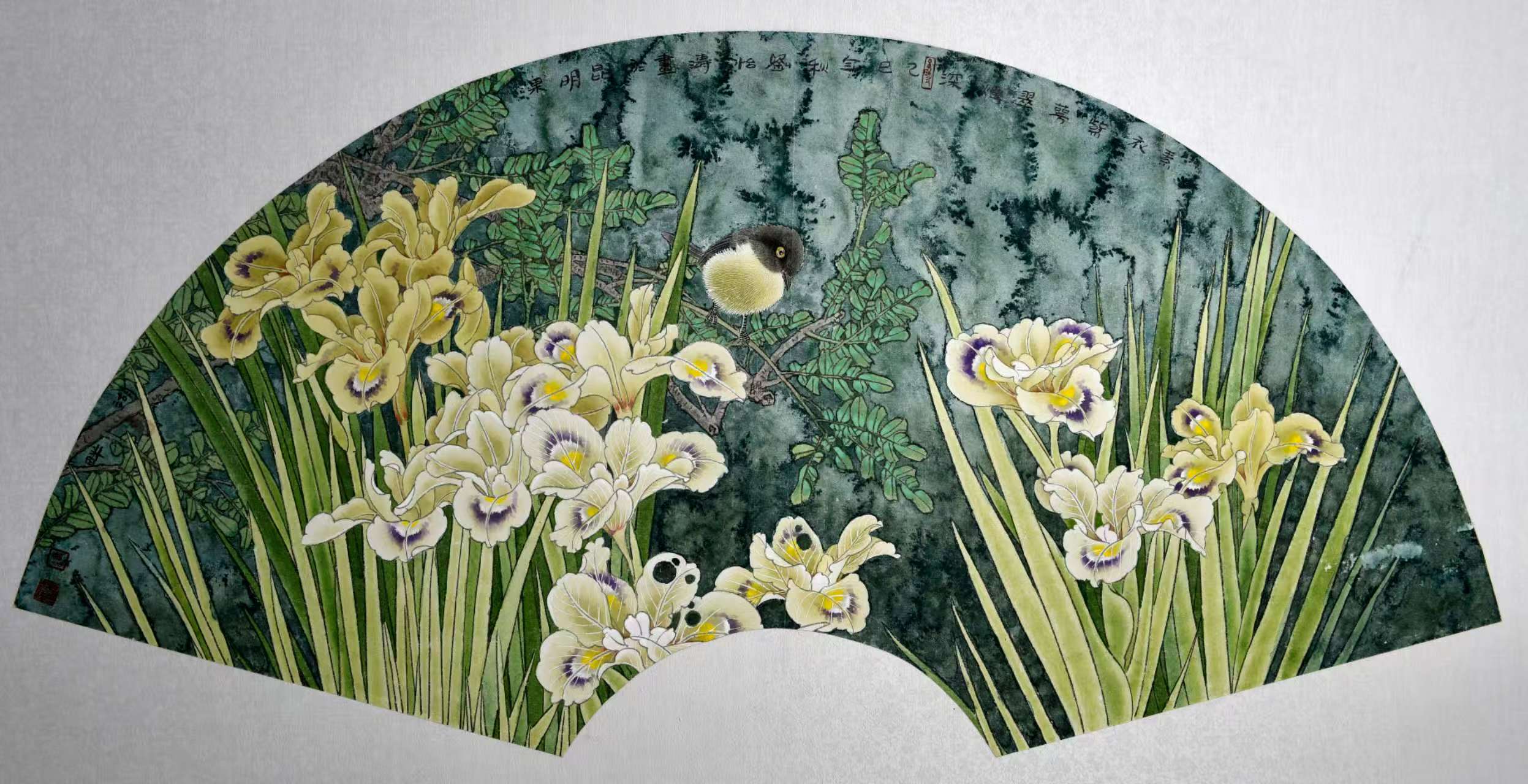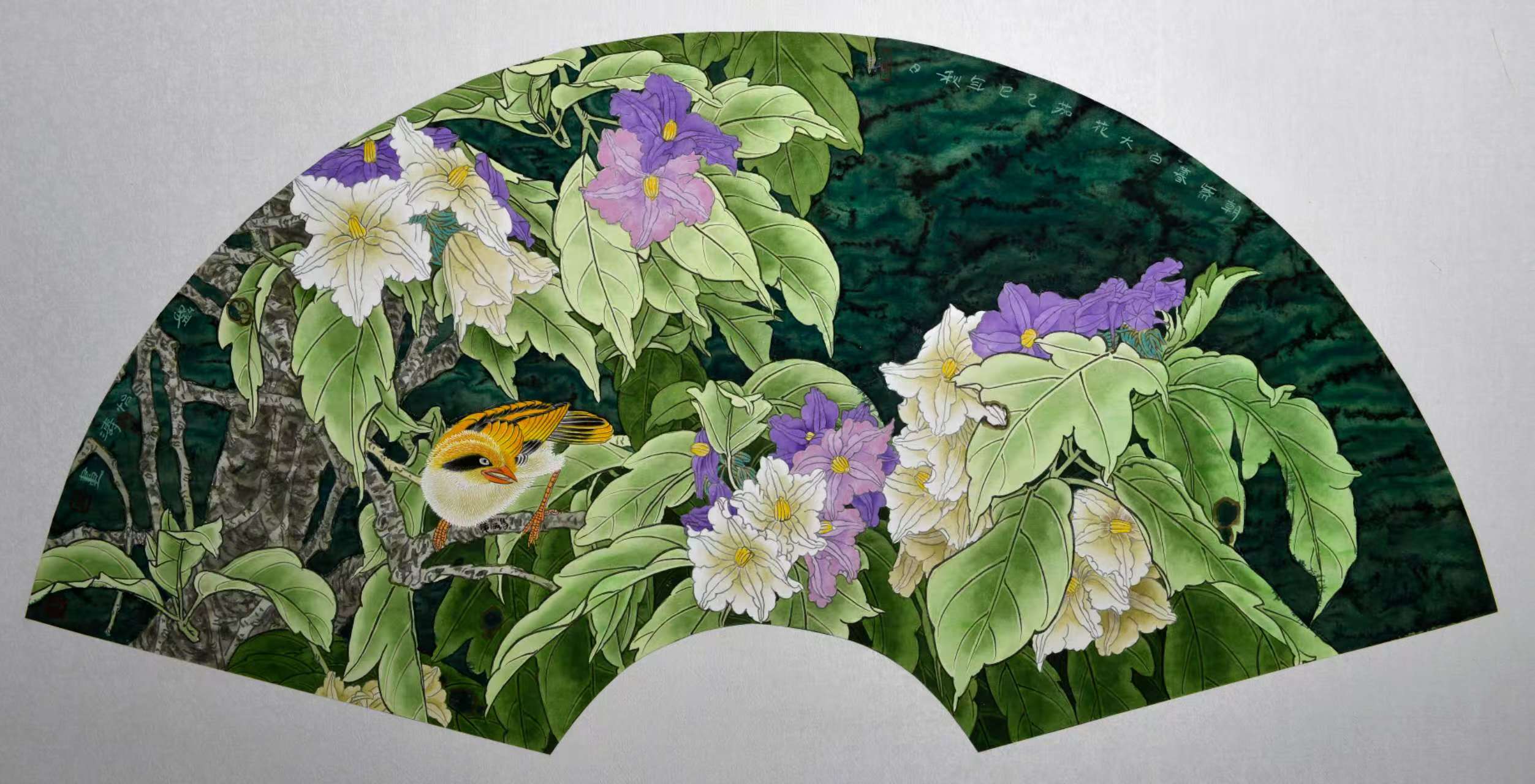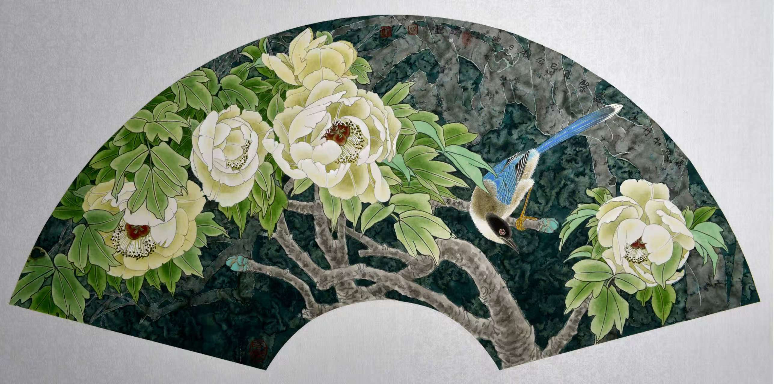 名家书画:刘怡涛 工笔花鸟作品 132x66cm