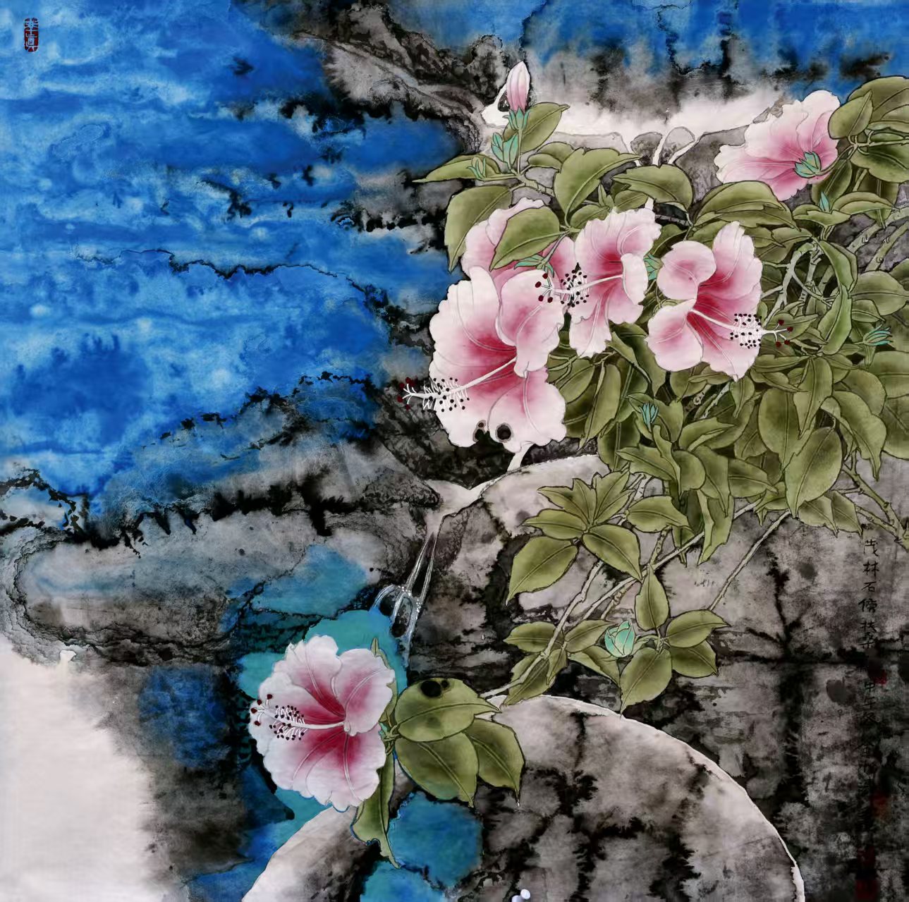 名家书画:刘怡涛 花鸟画 66x66cm