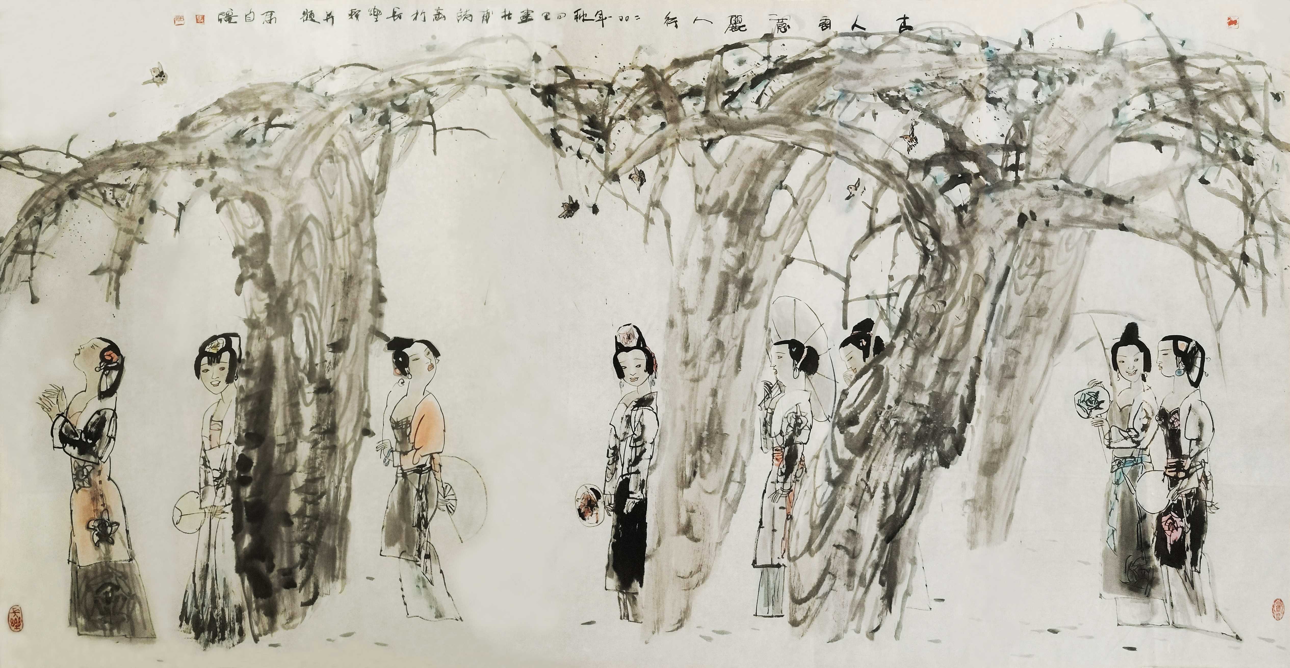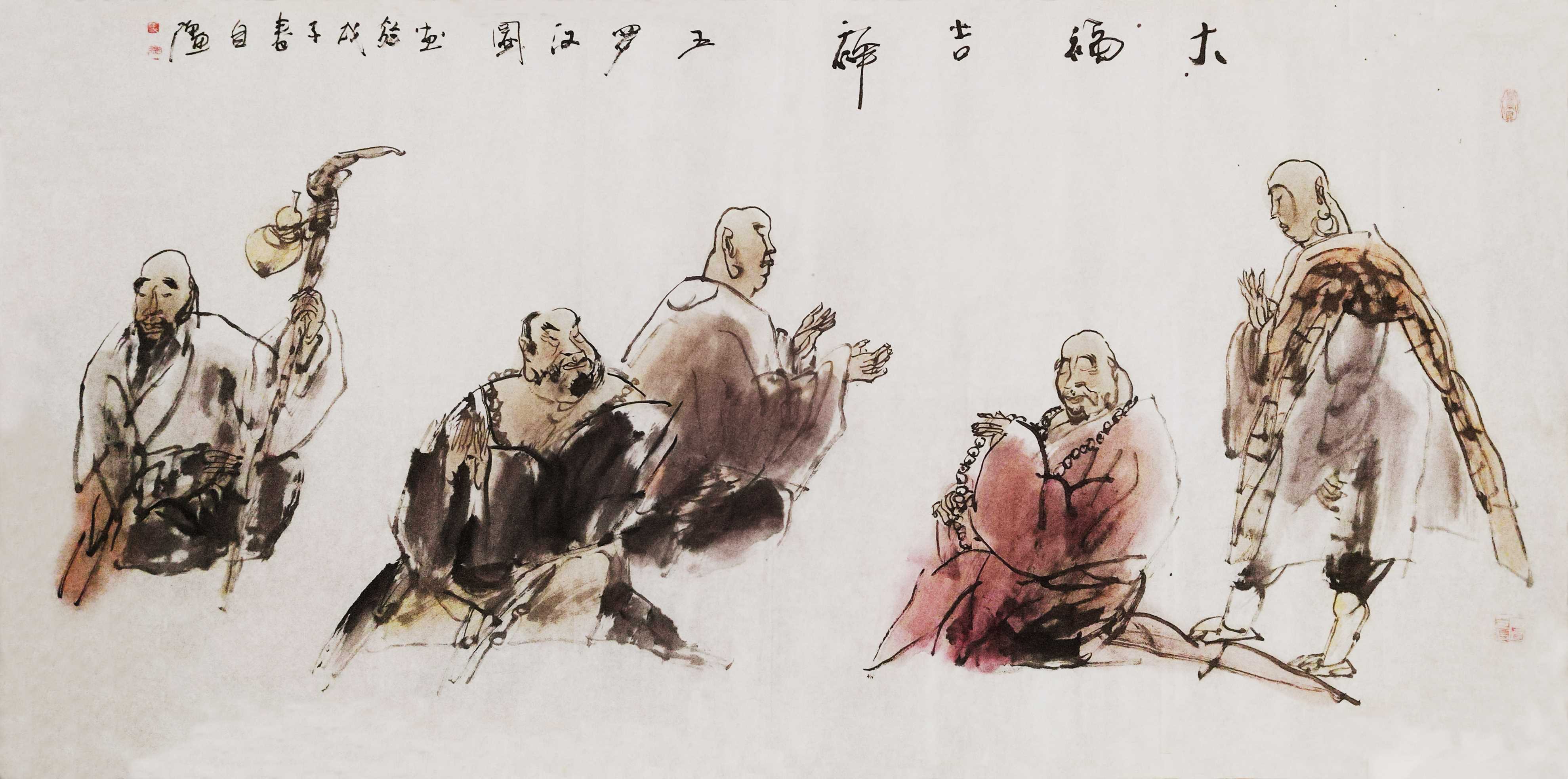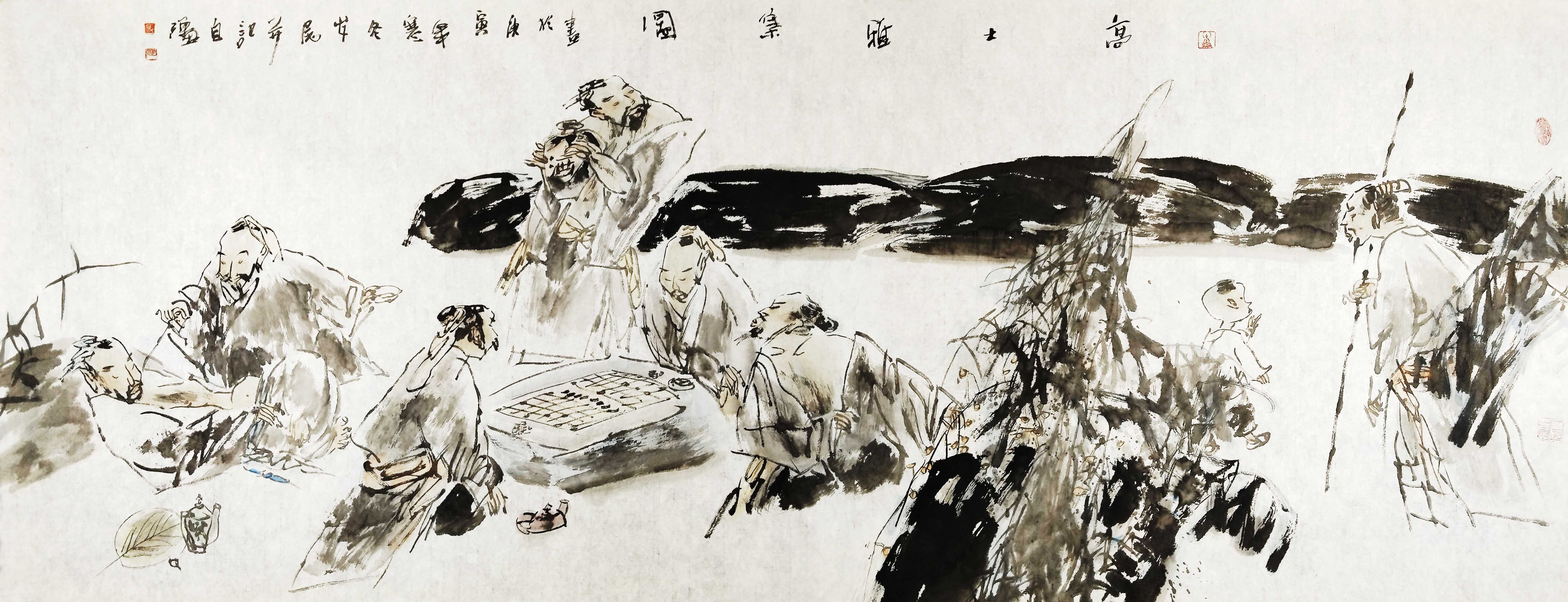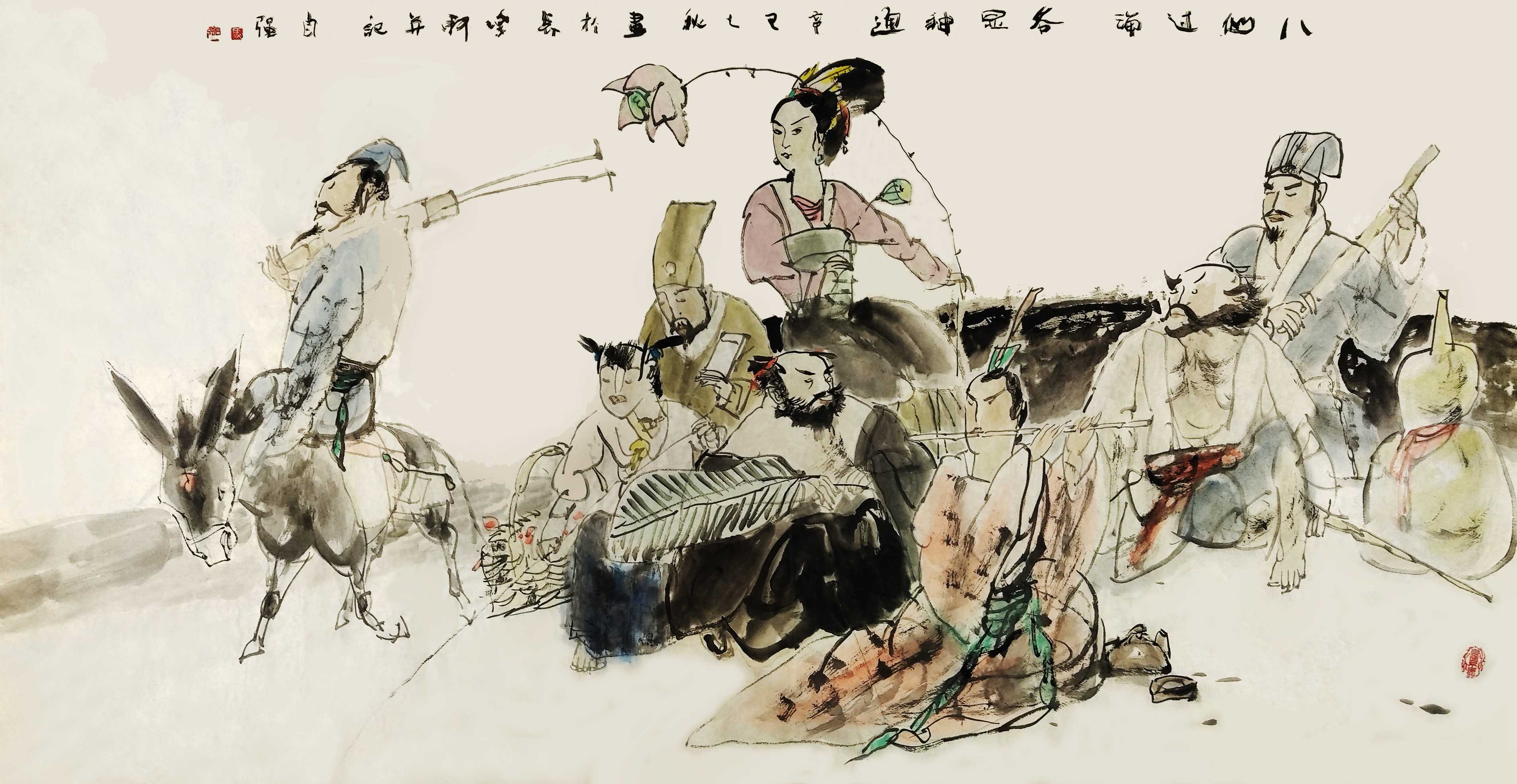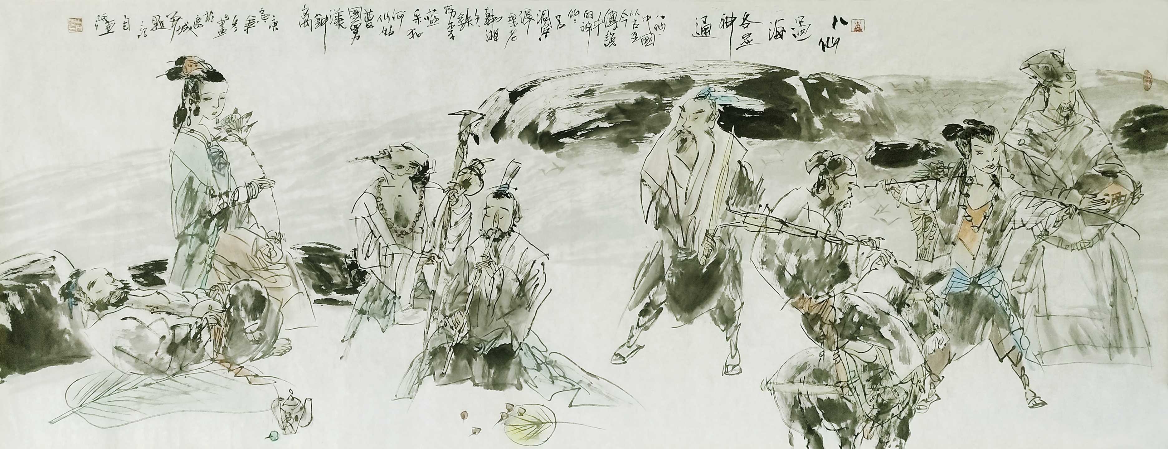 名家书画:马自强 人物画作品 68x137cm