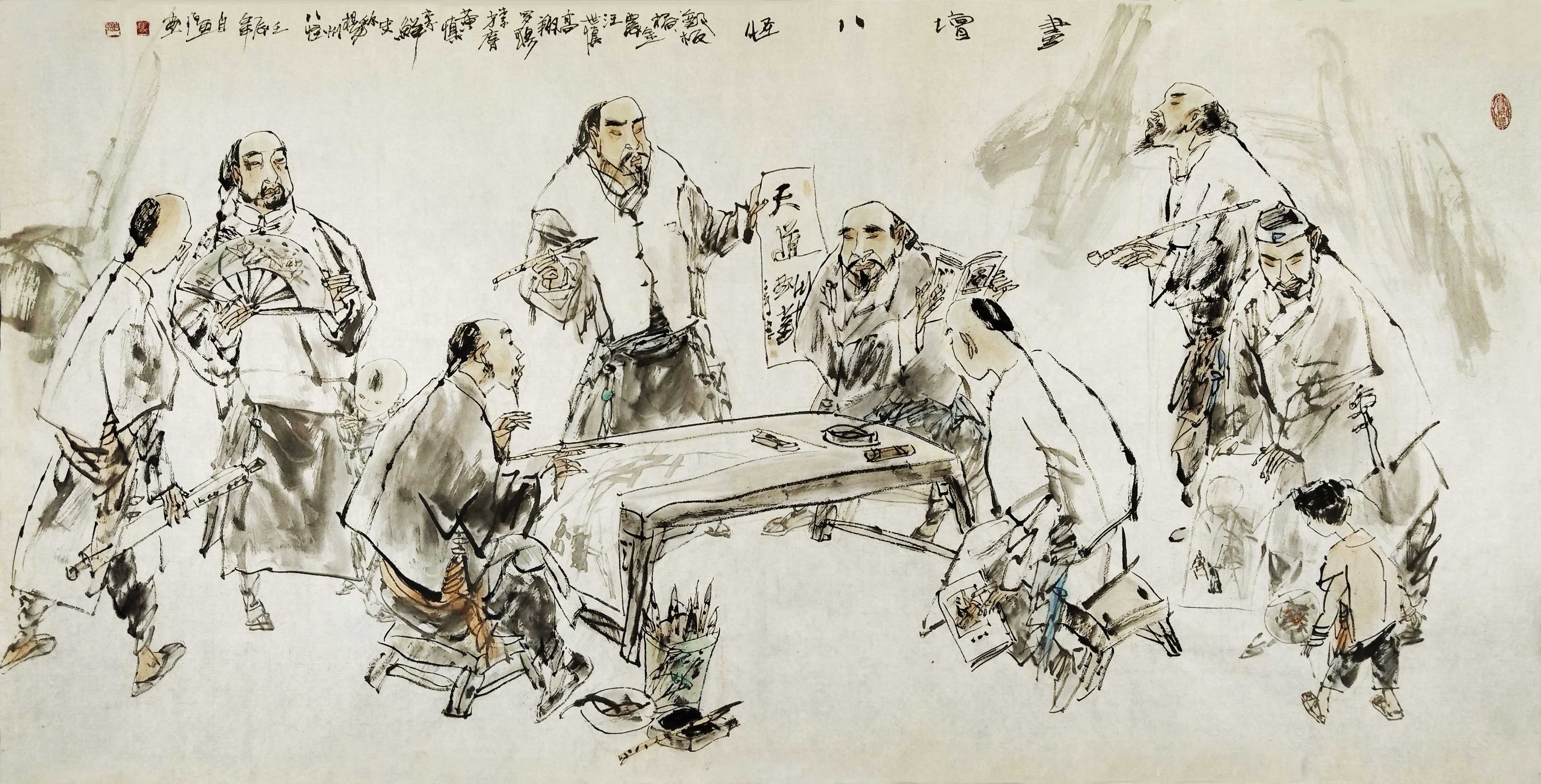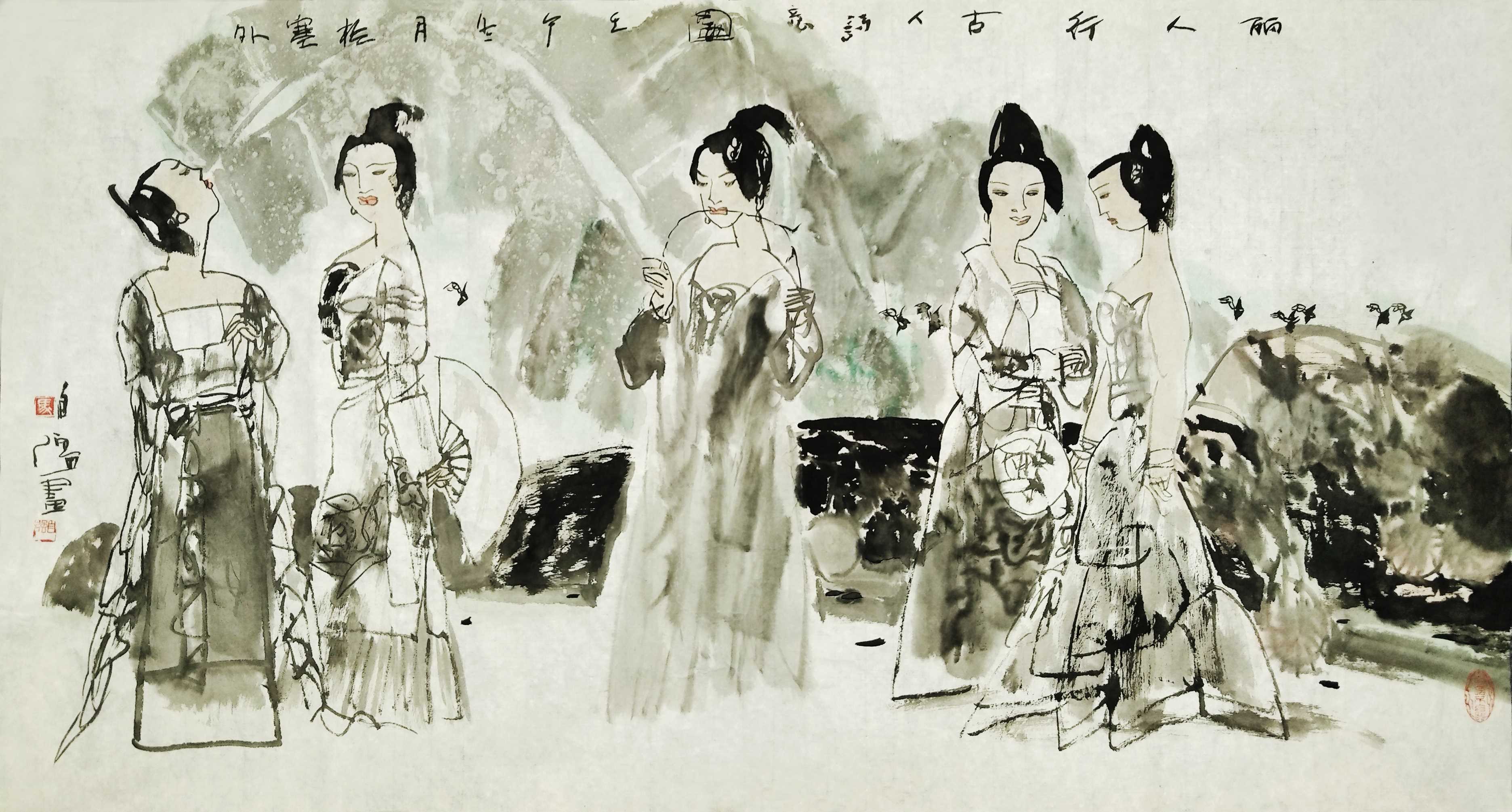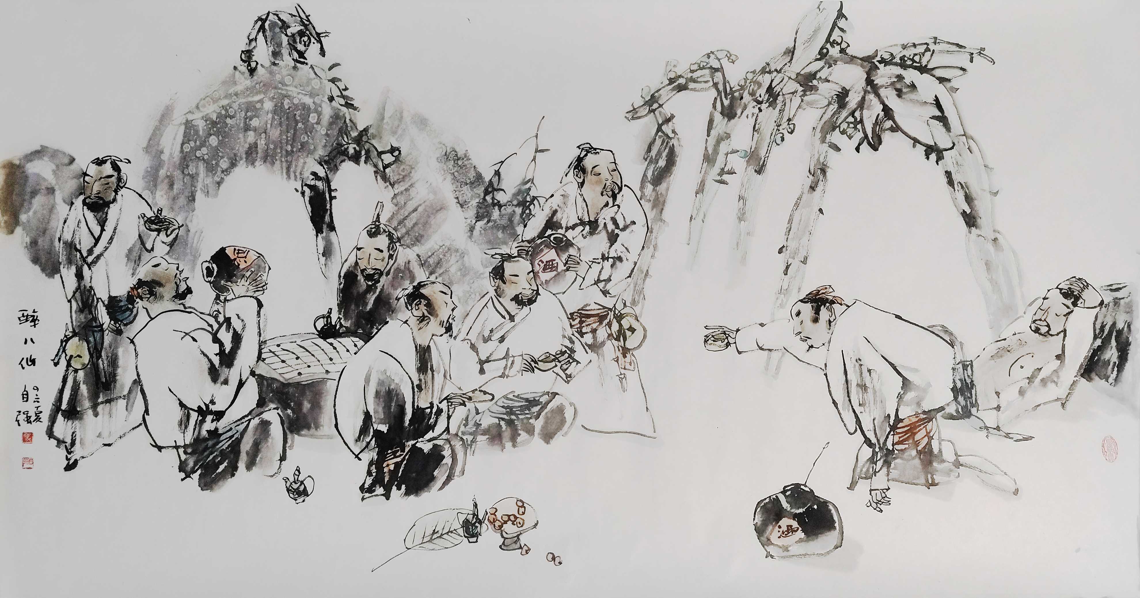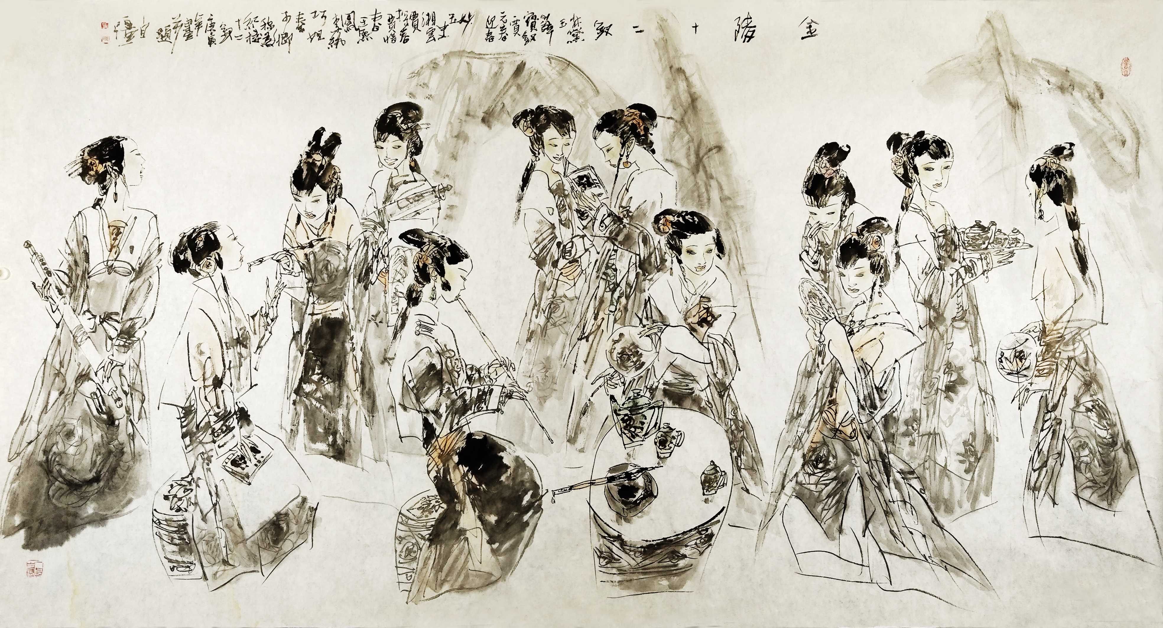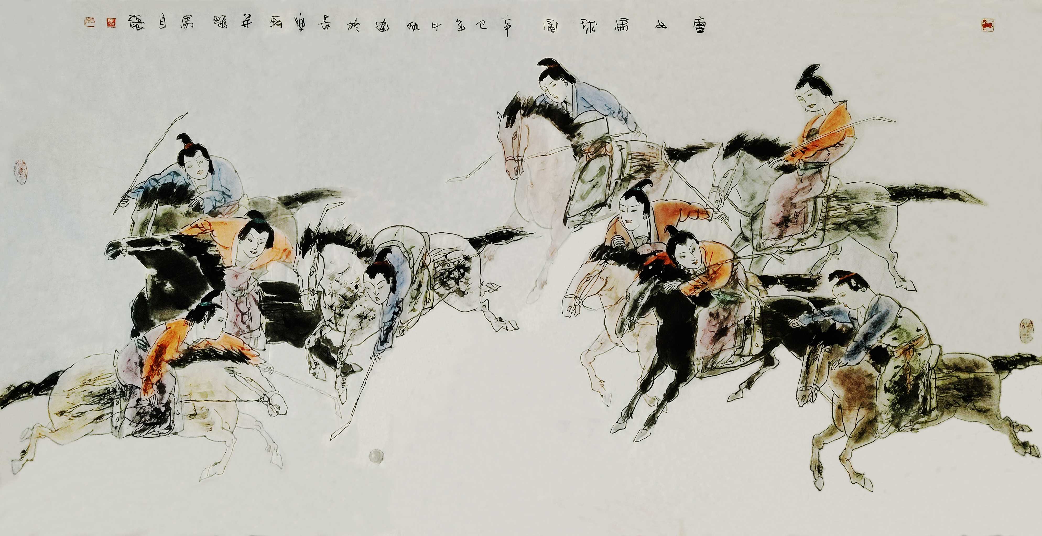 名家书画:马自强 人物画作品 68x137cm