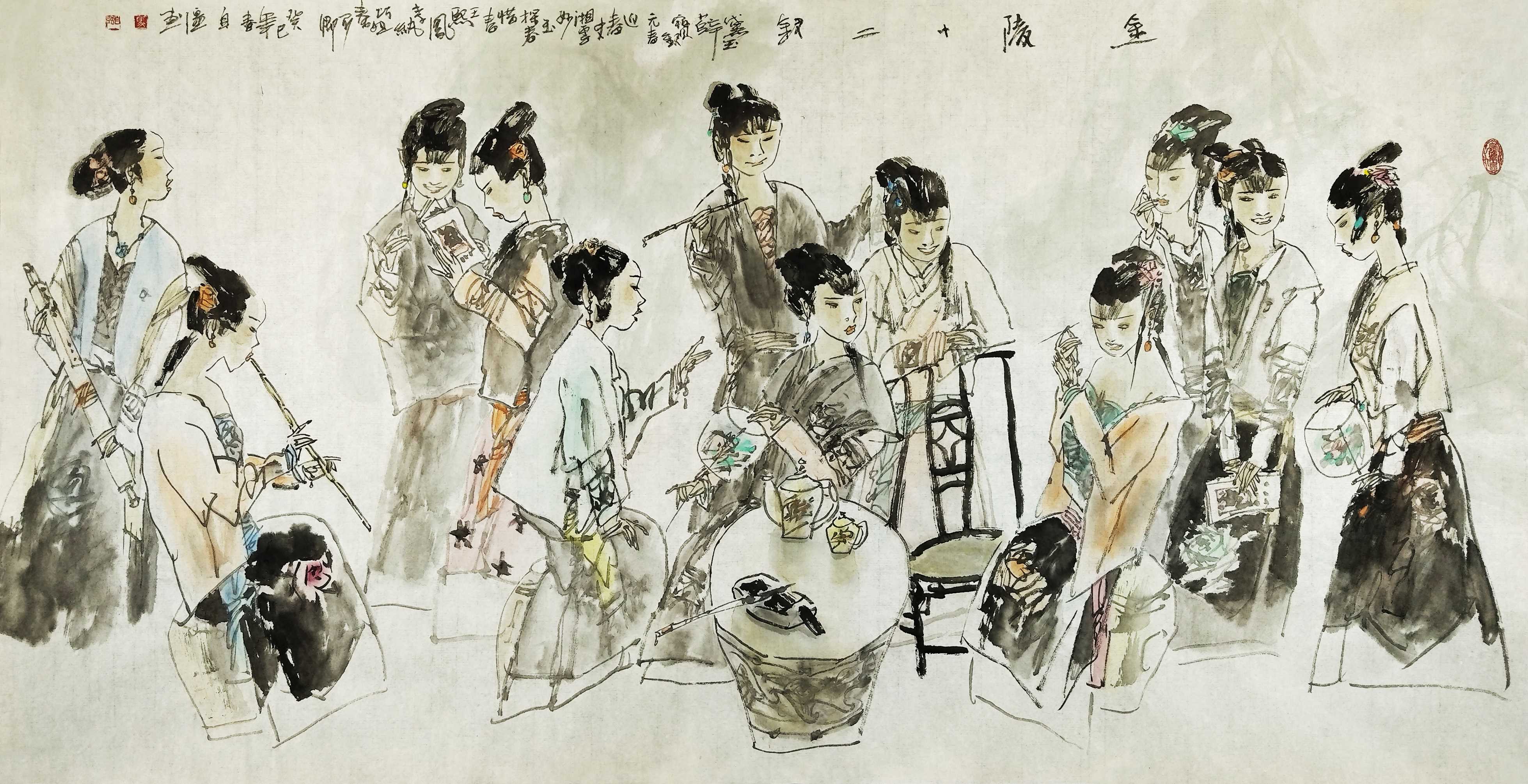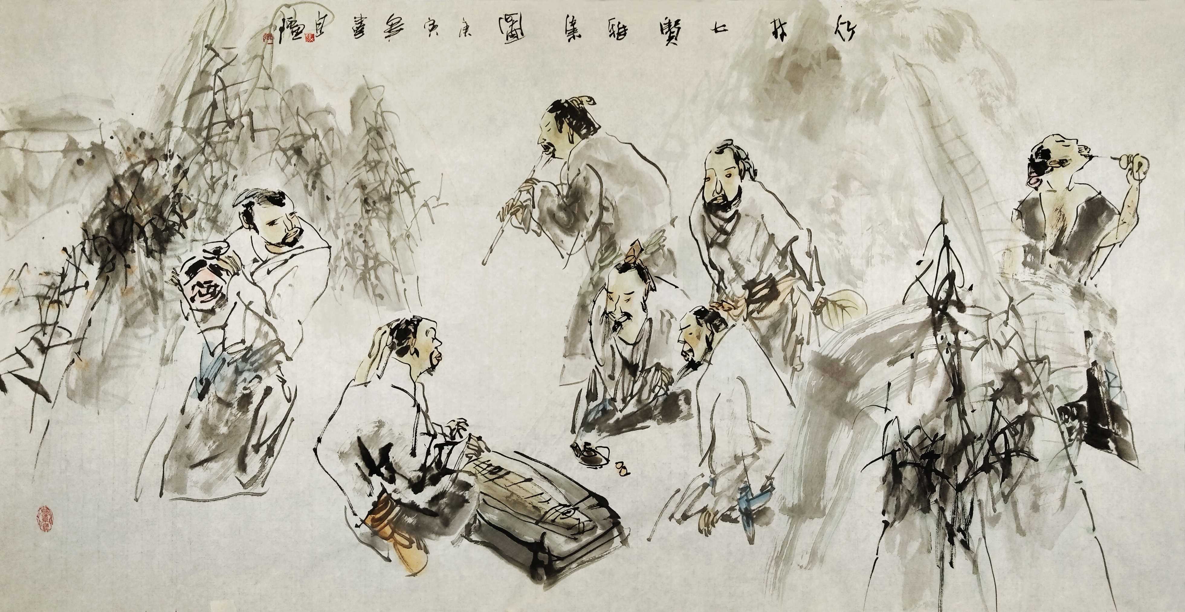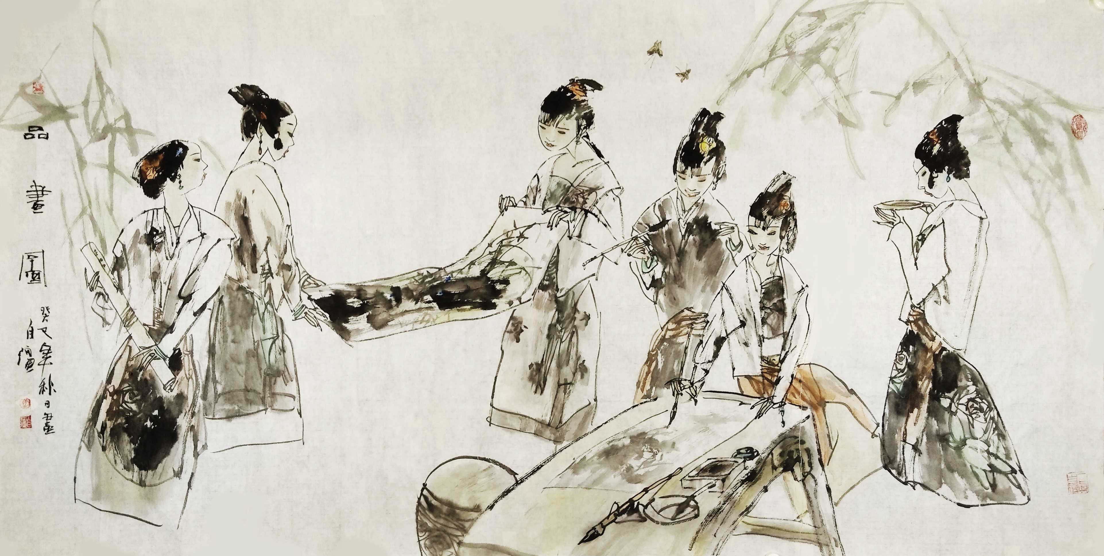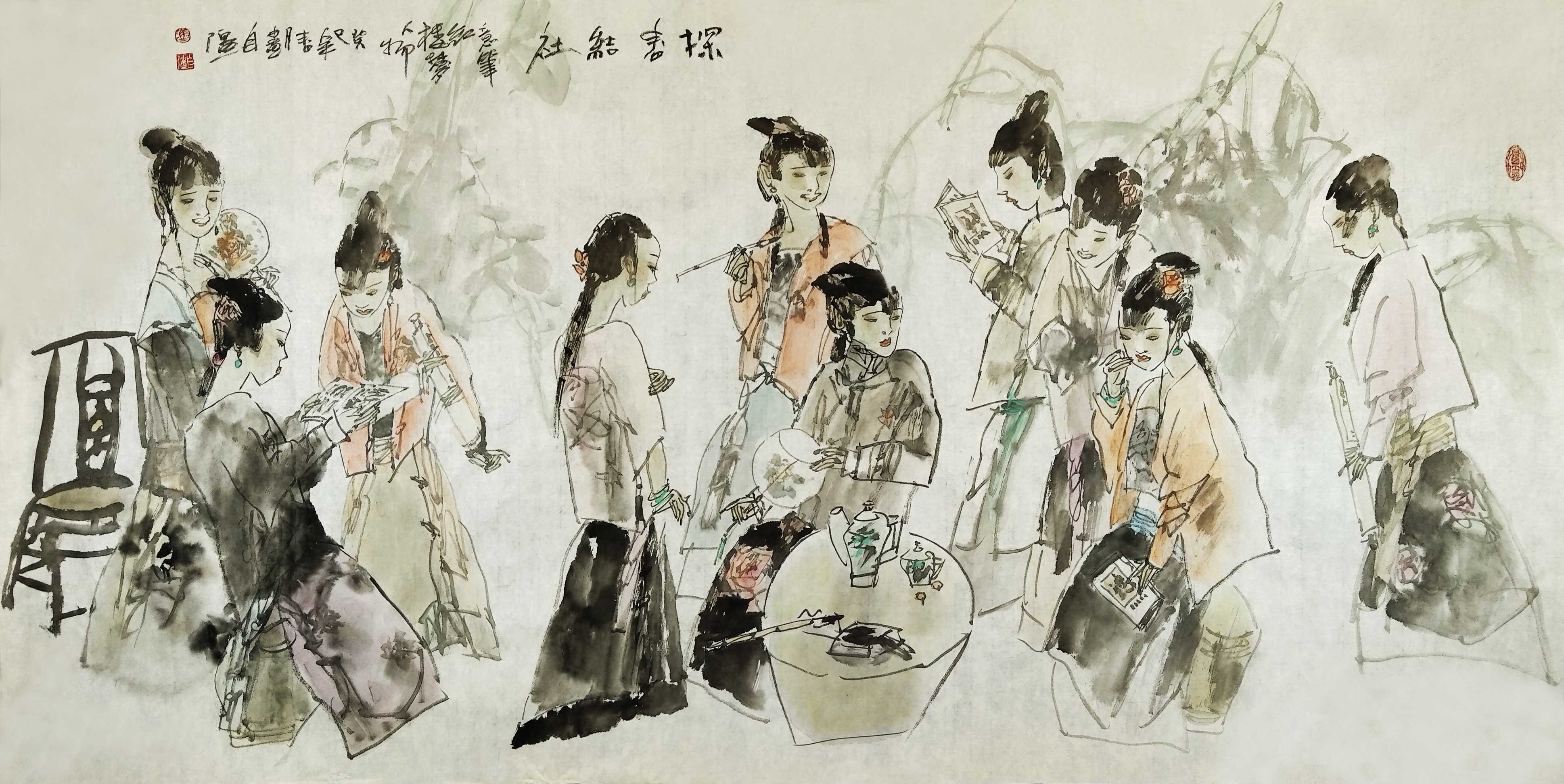名家书画:马自强 人物画作品 68x137cm
