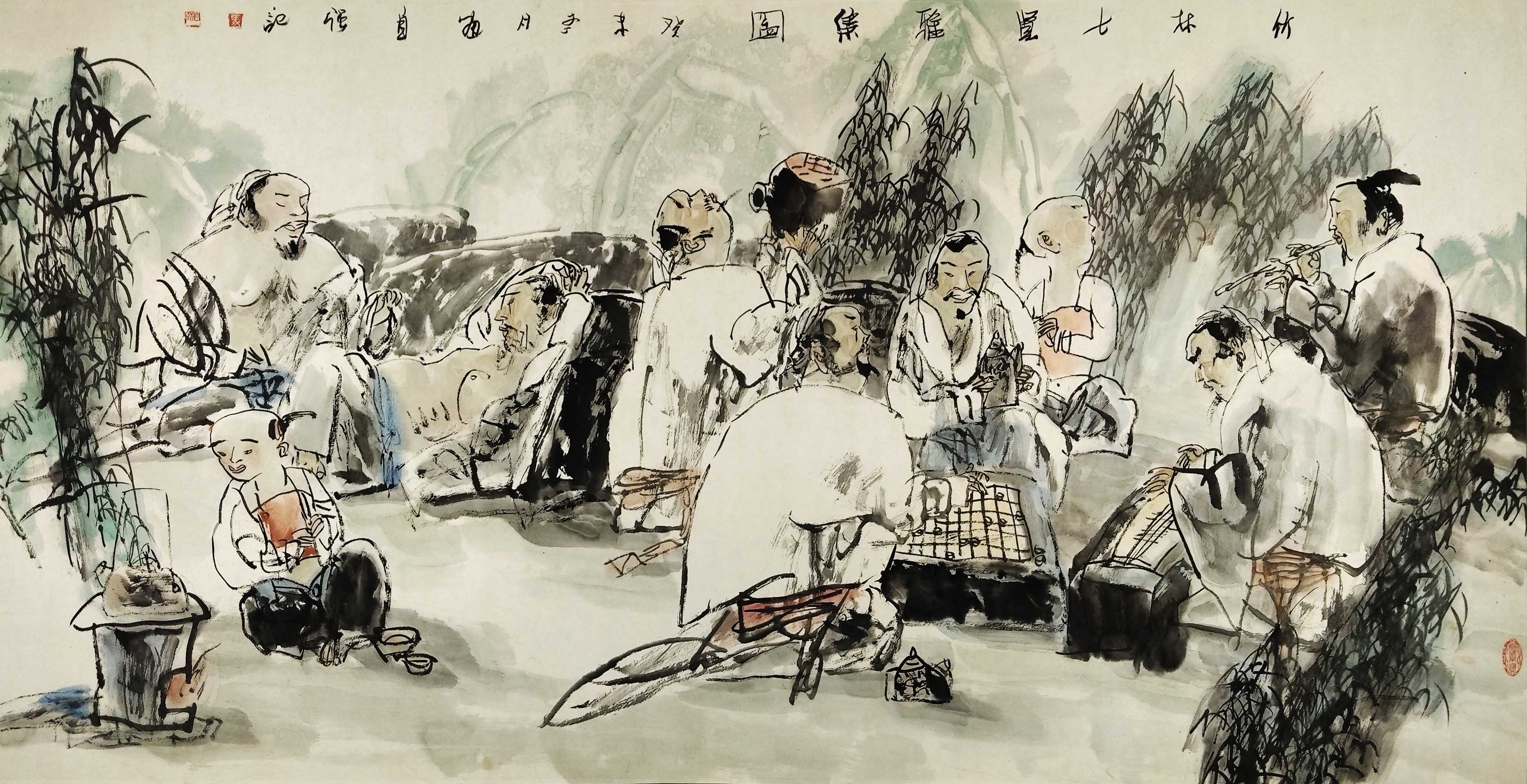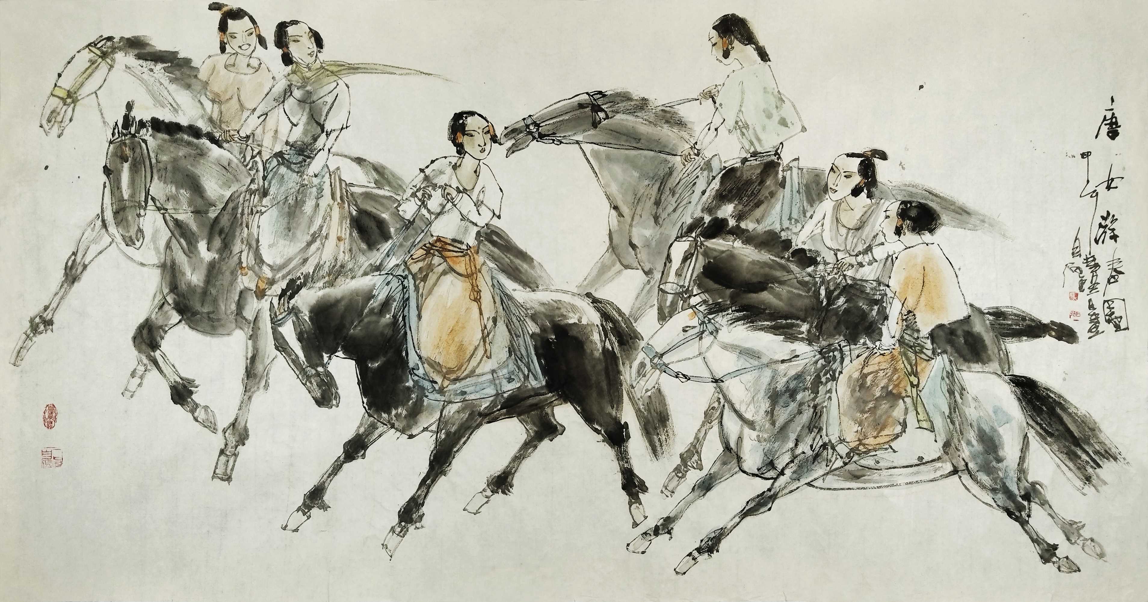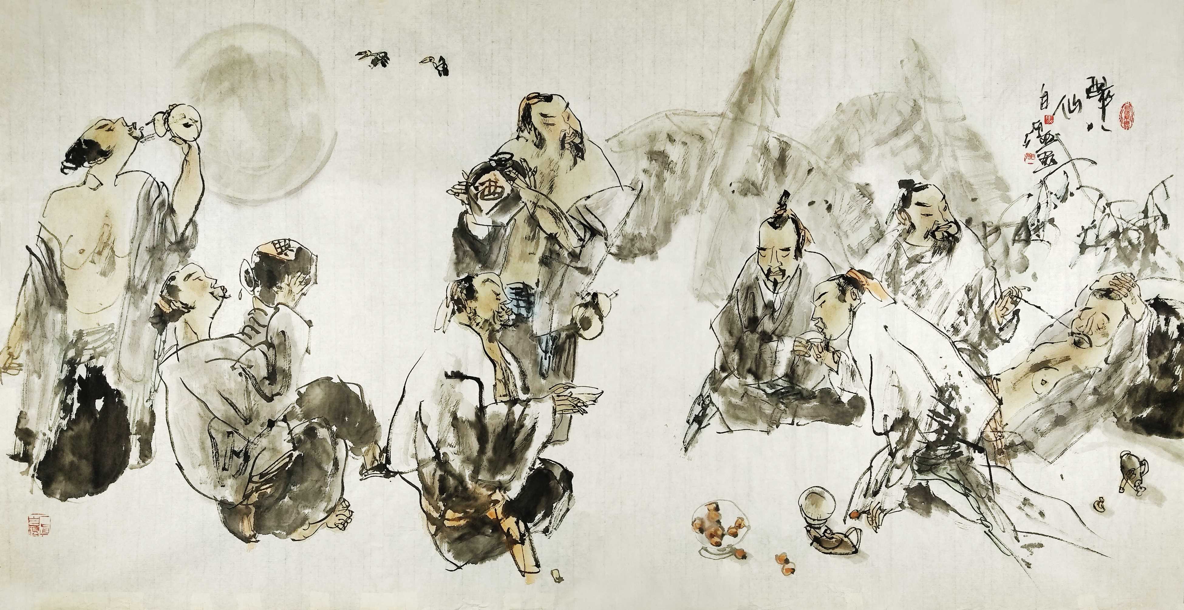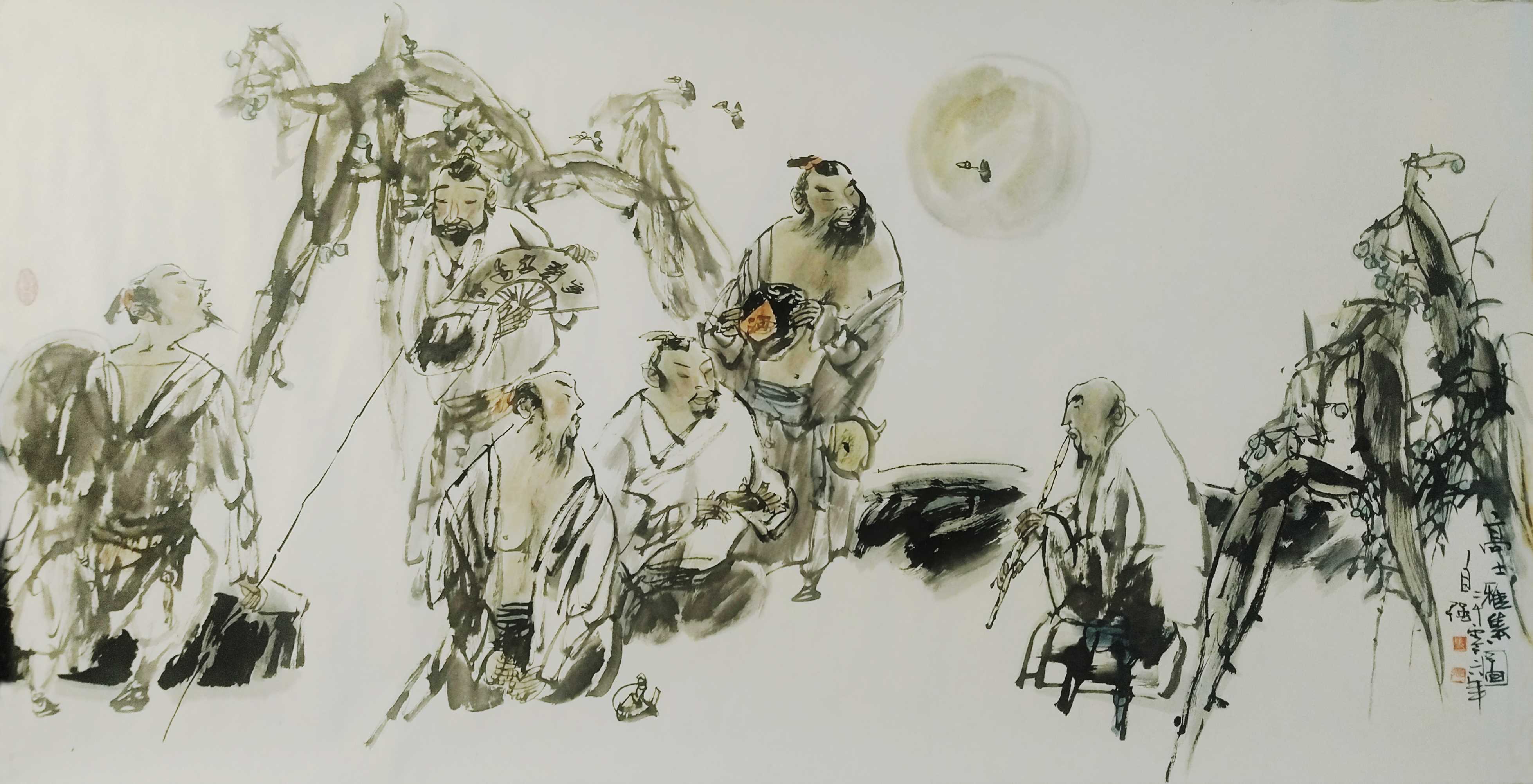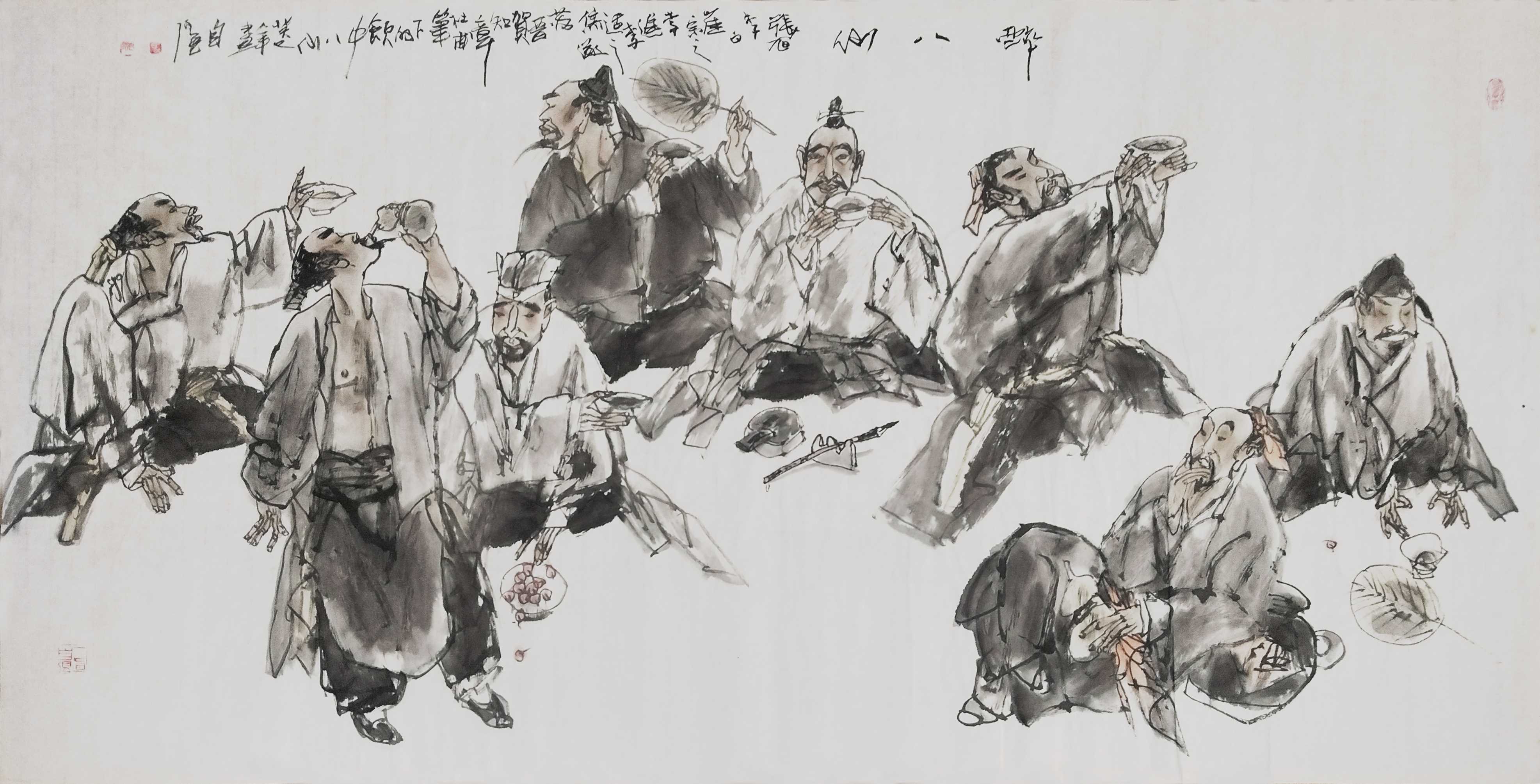 名家书画:马自强 人物画作品 68x137cm