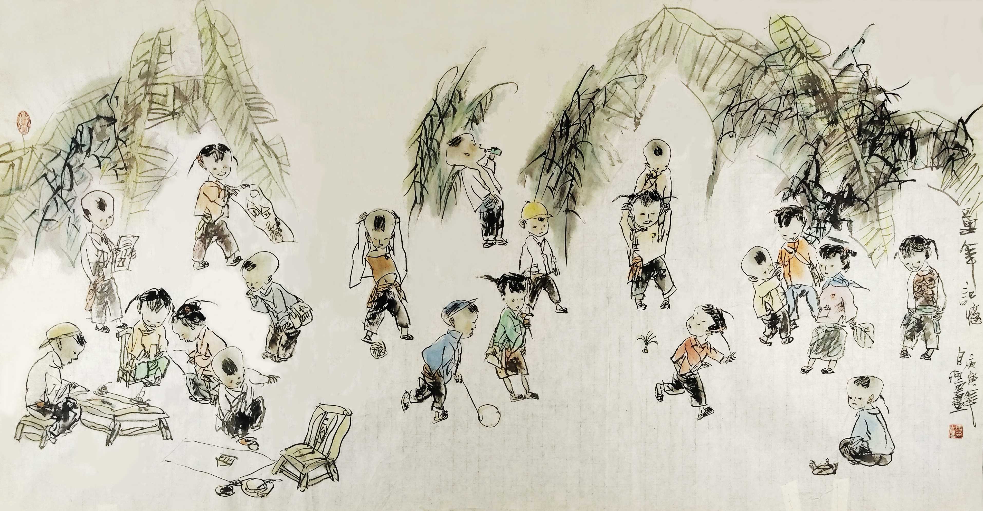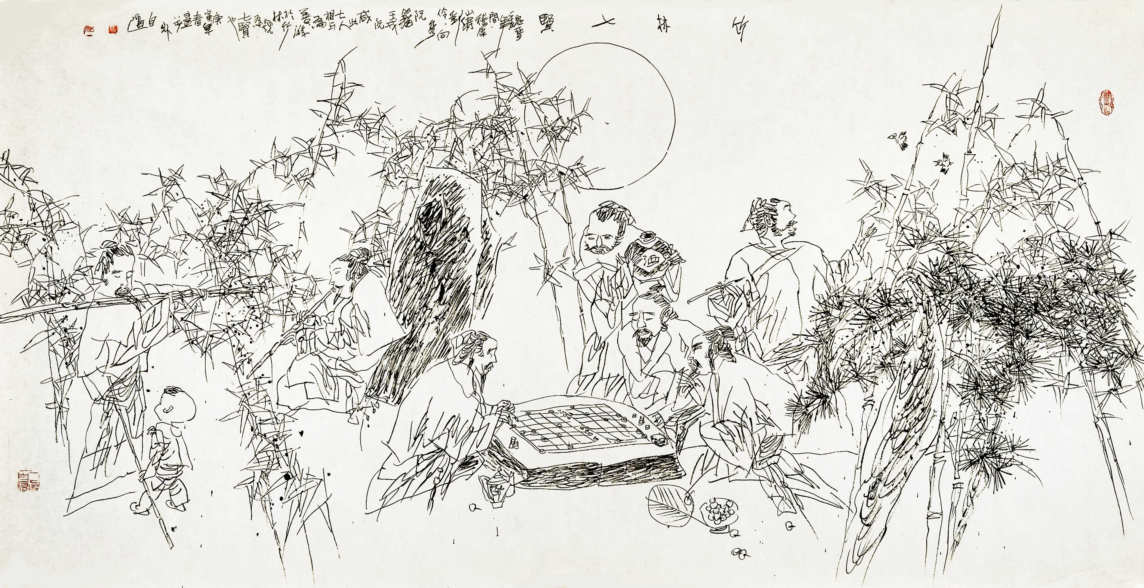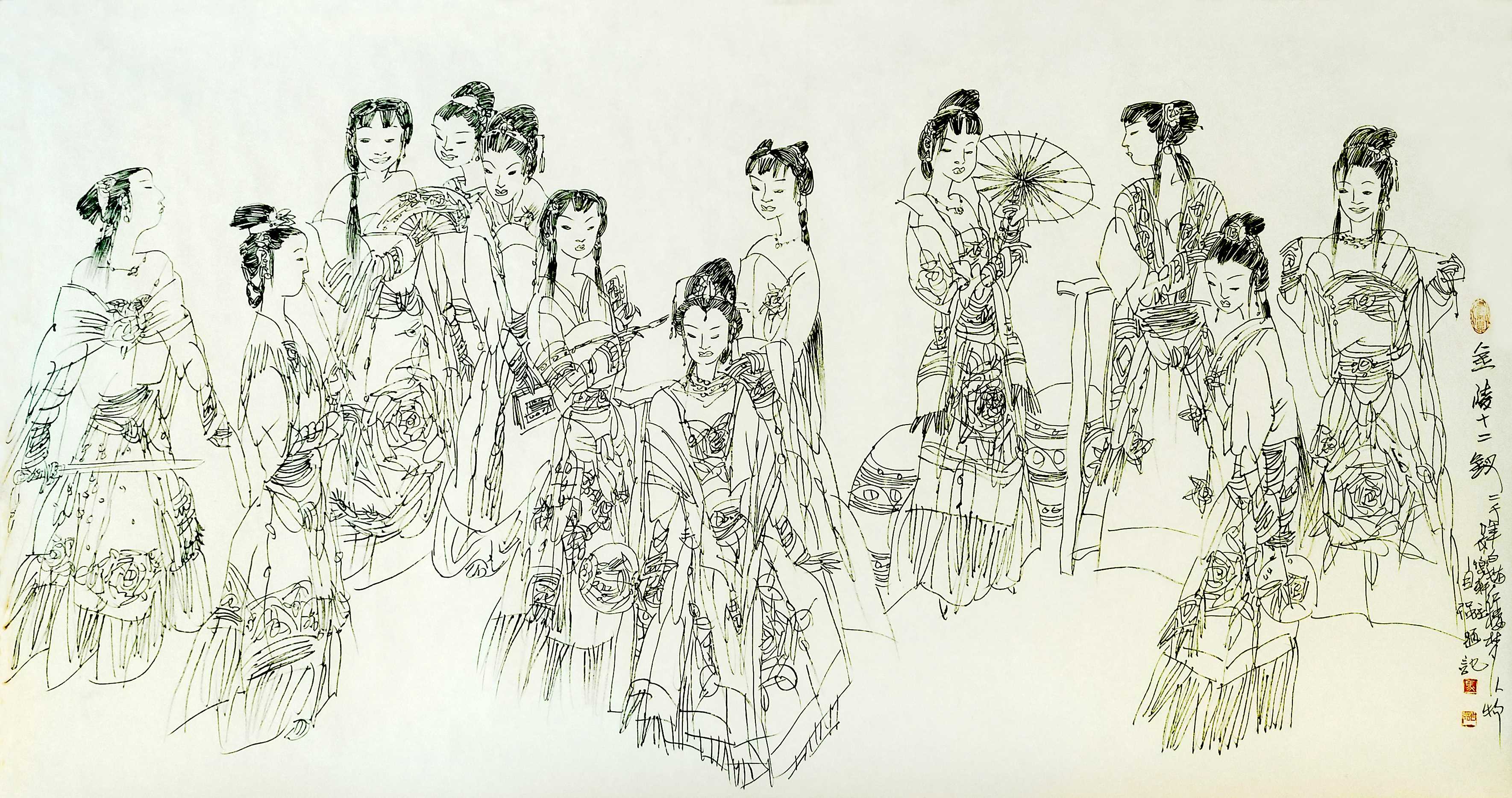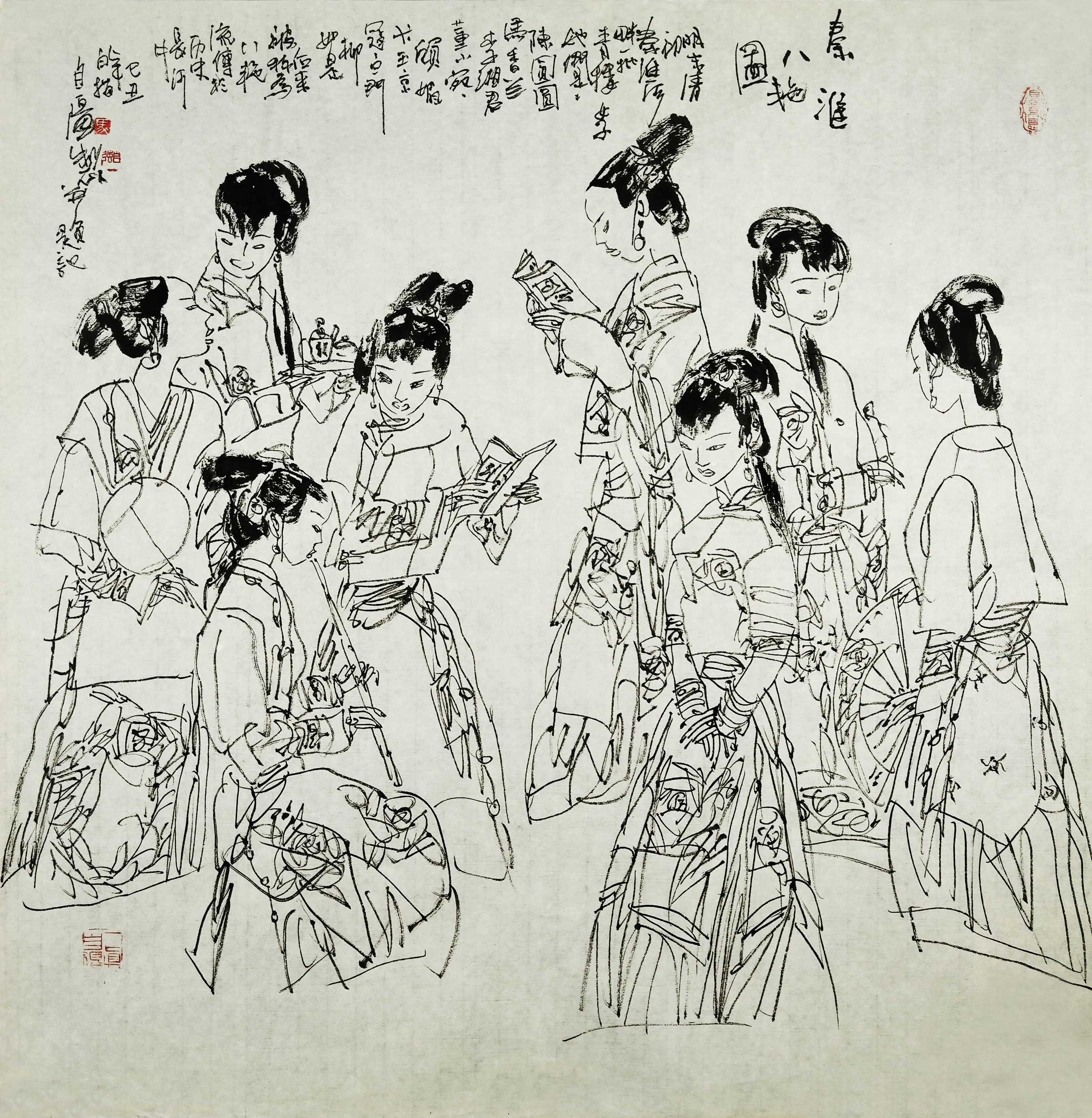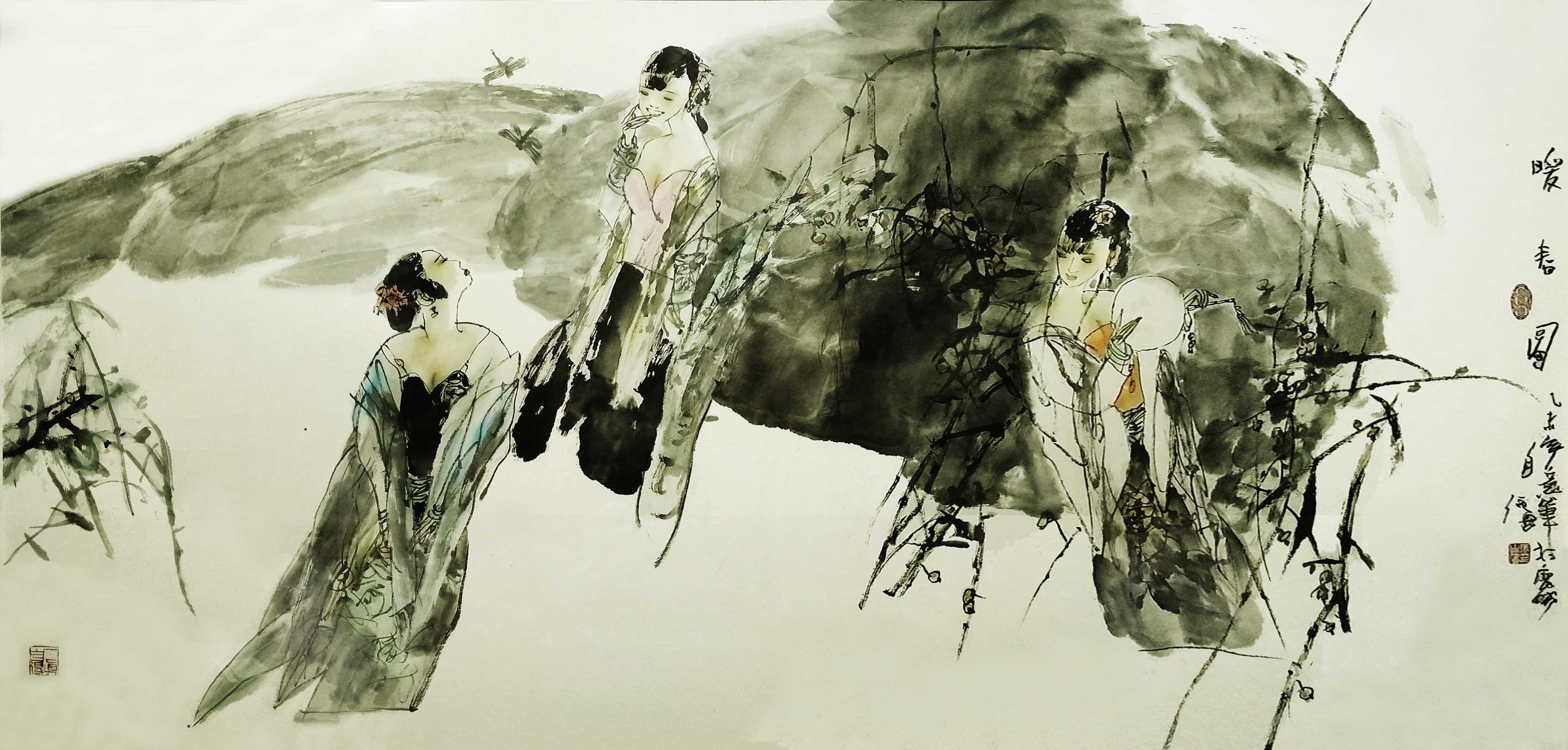 名家书画:马自强 人物画作品 68x137cm