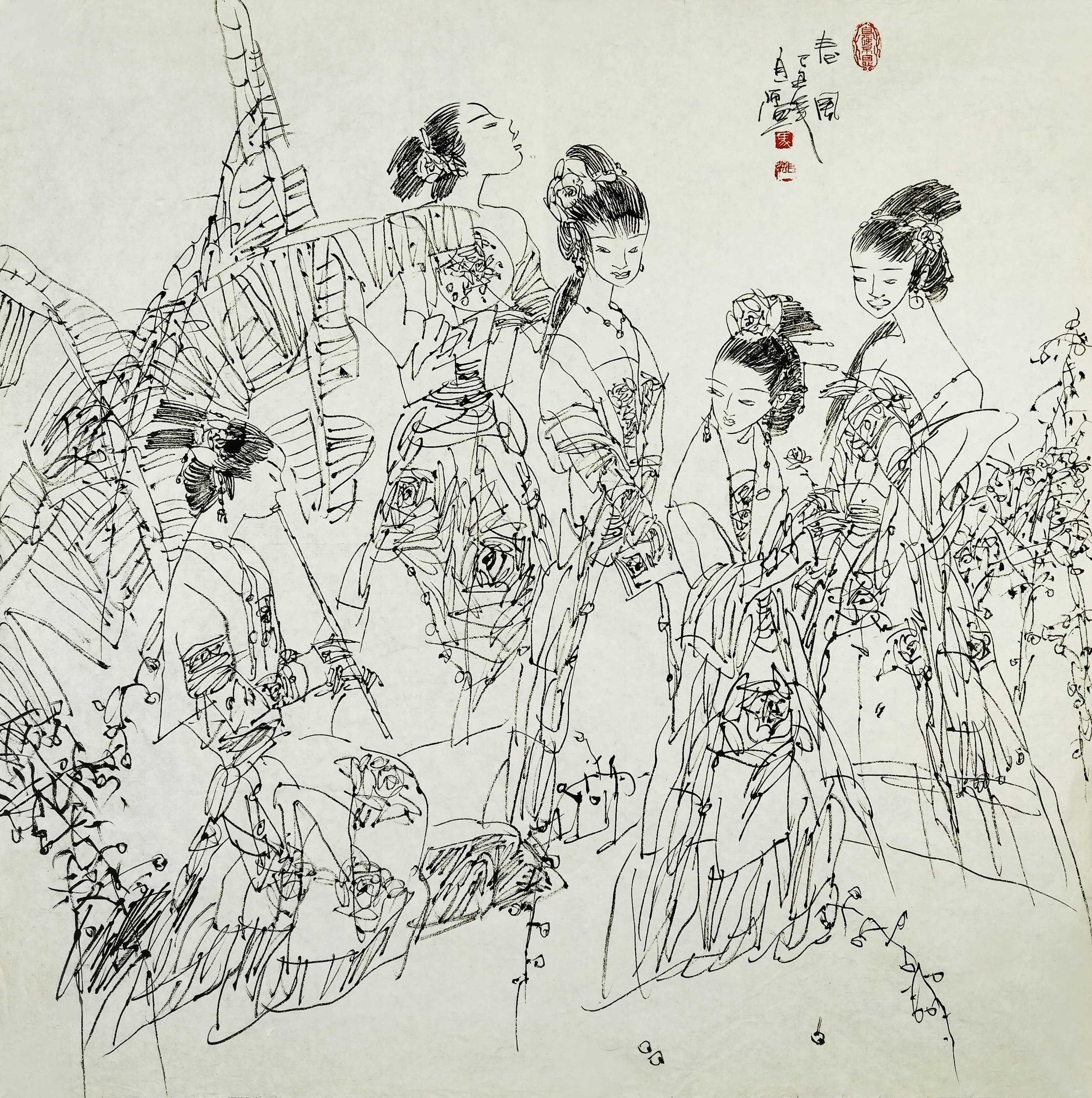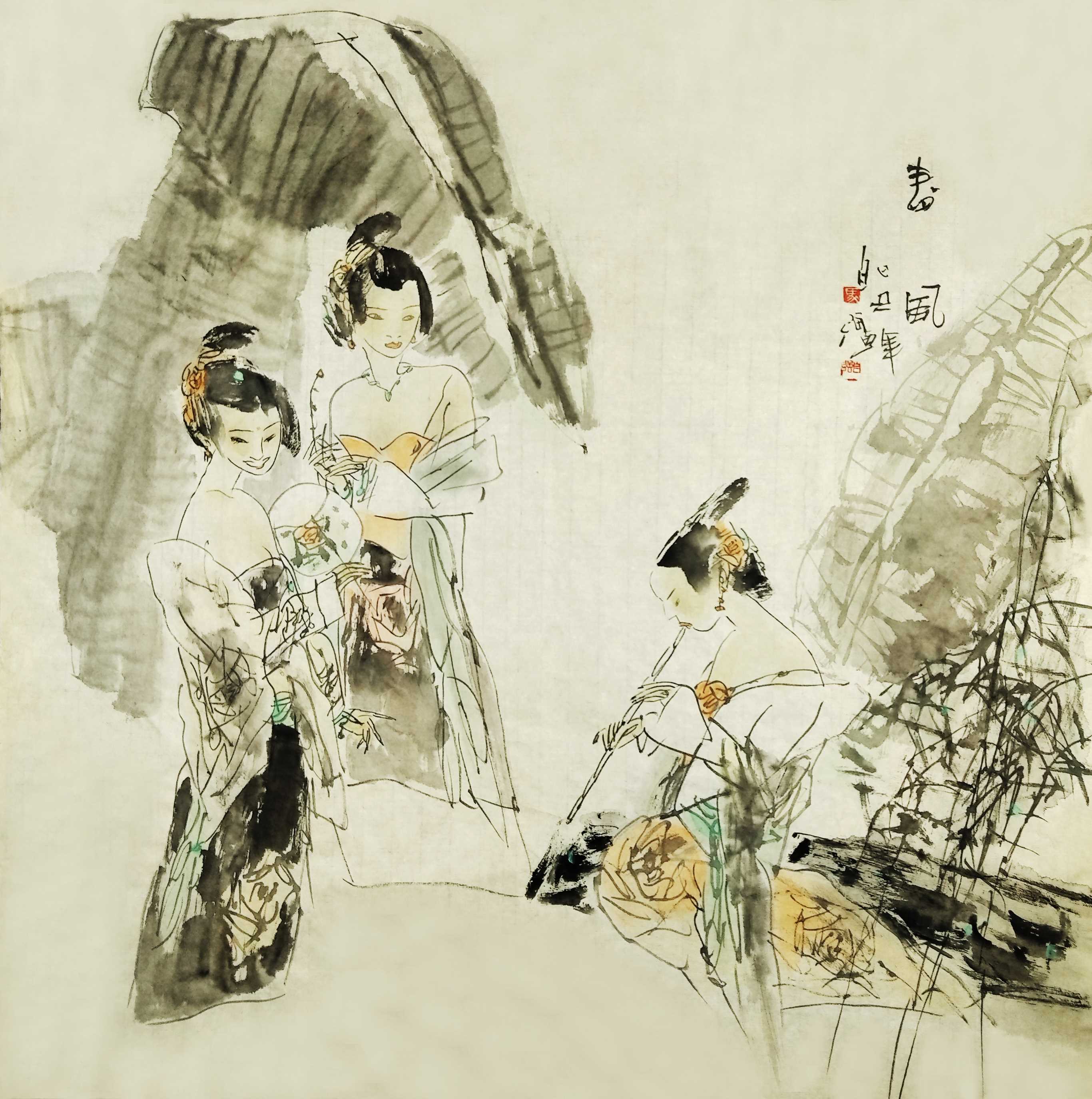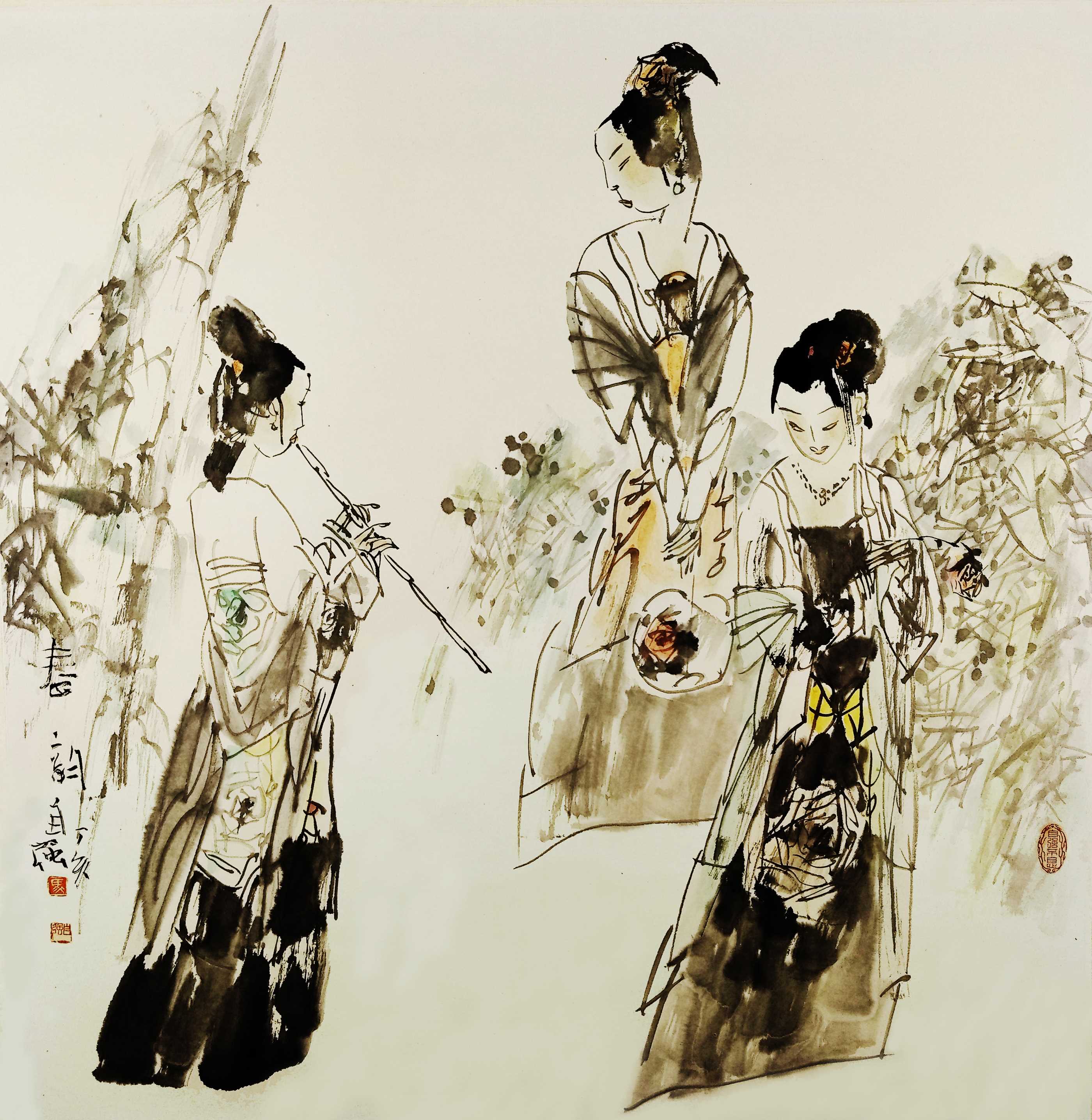 名家书画:马自强 人物画作品 68x68cm