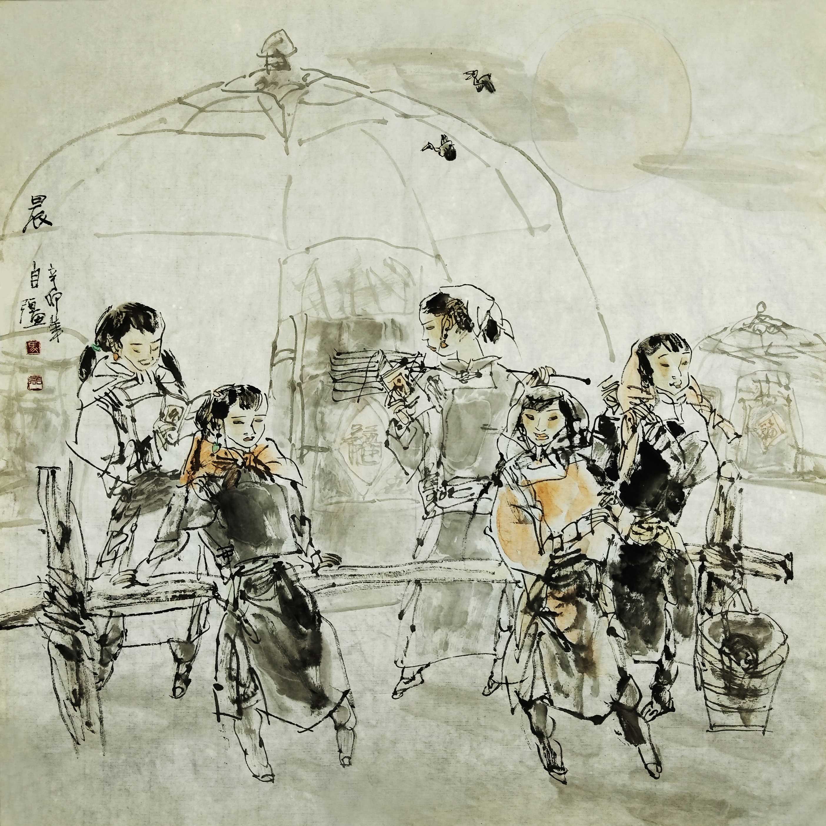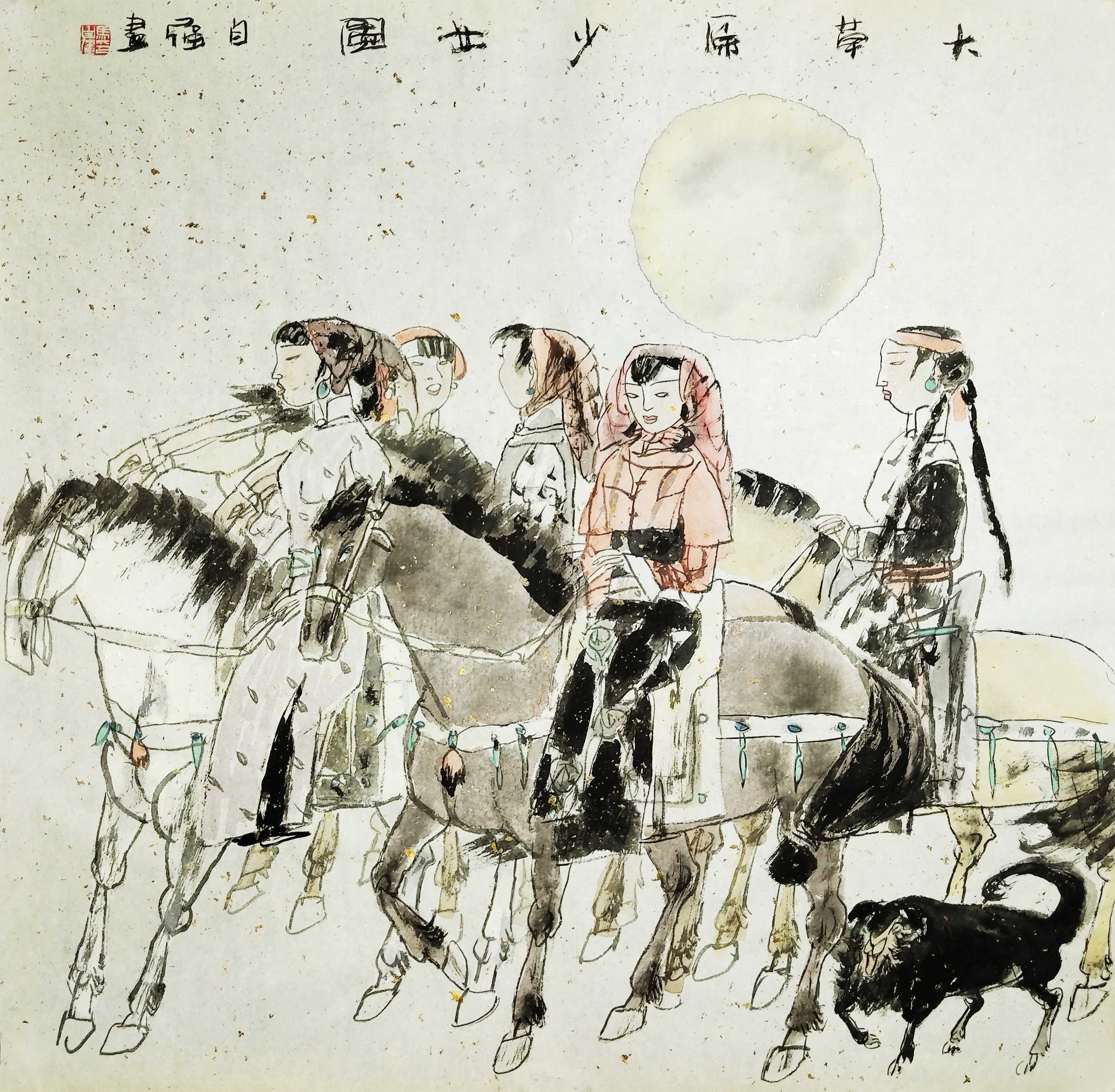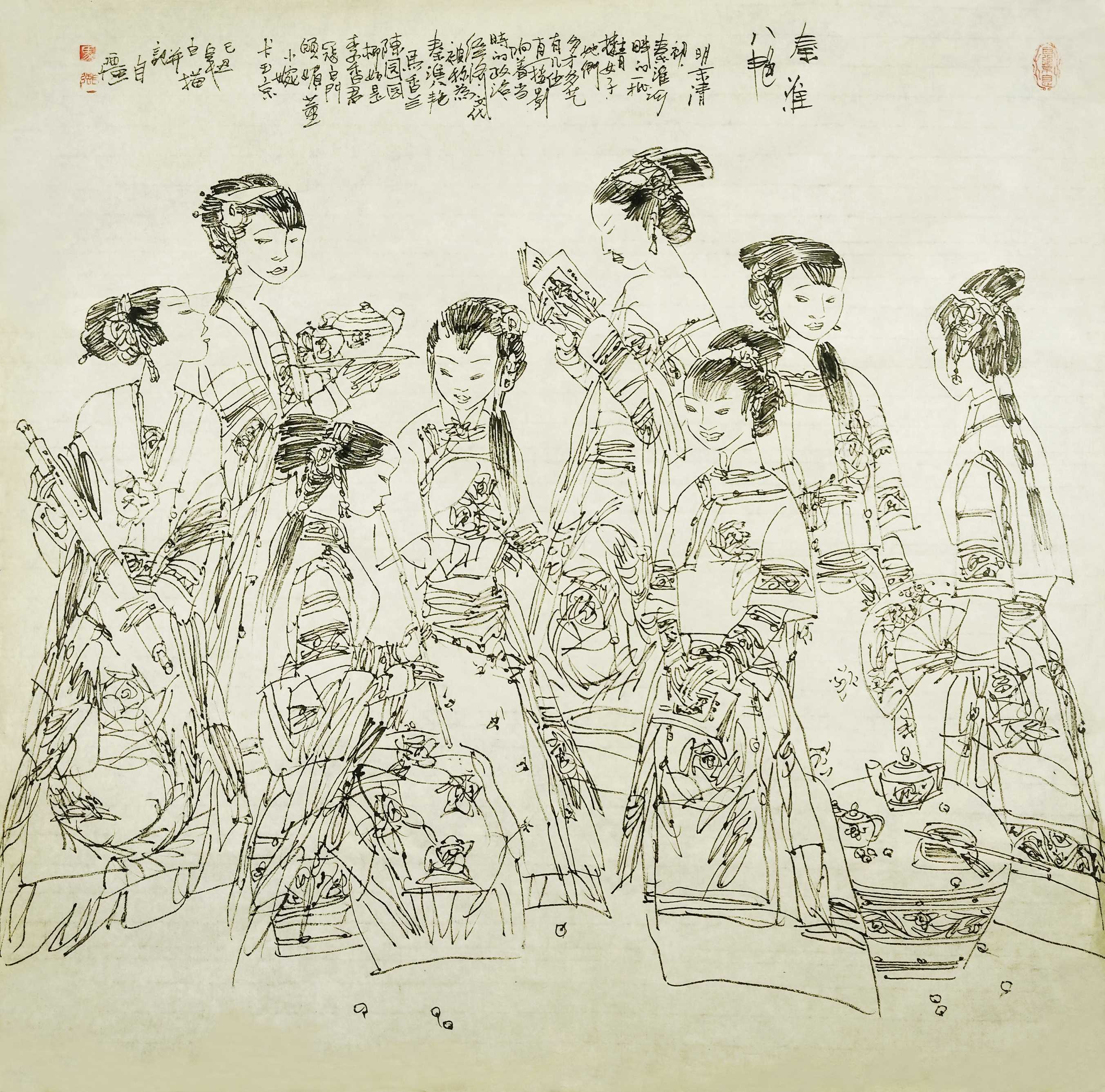 名家书画:马自强 人物画作品 68x68cm