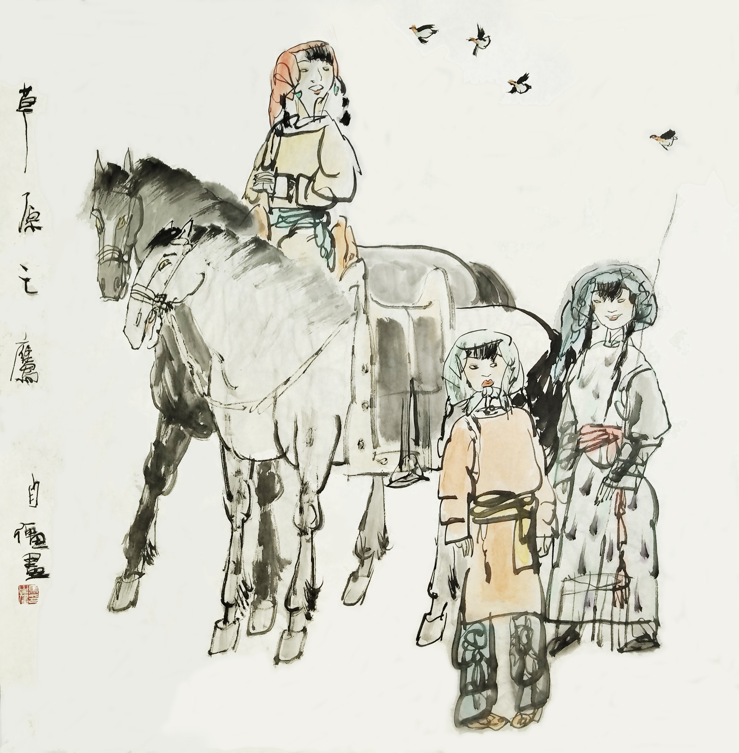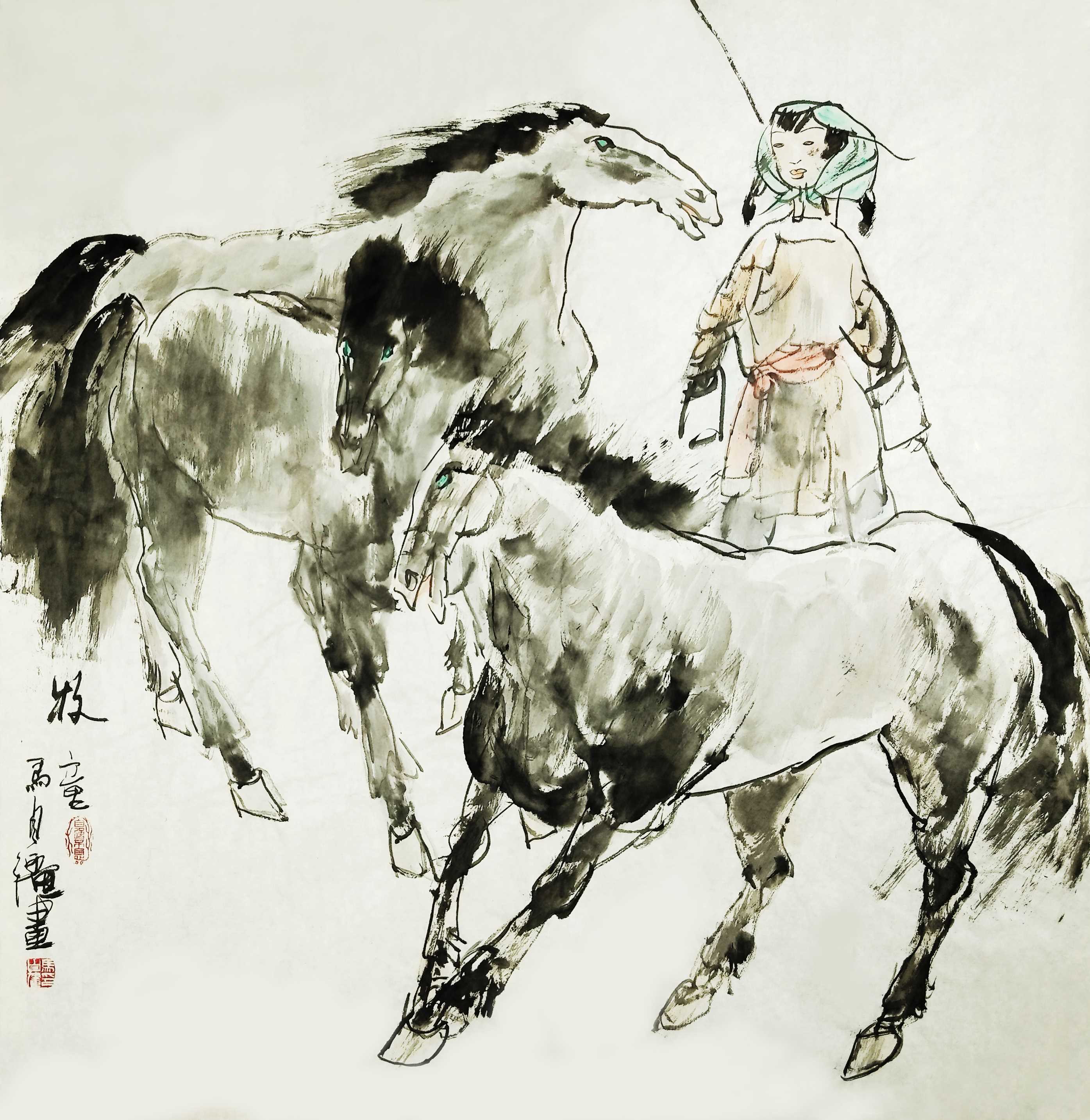 名家书画:马自强 人物画作品 70x45cm