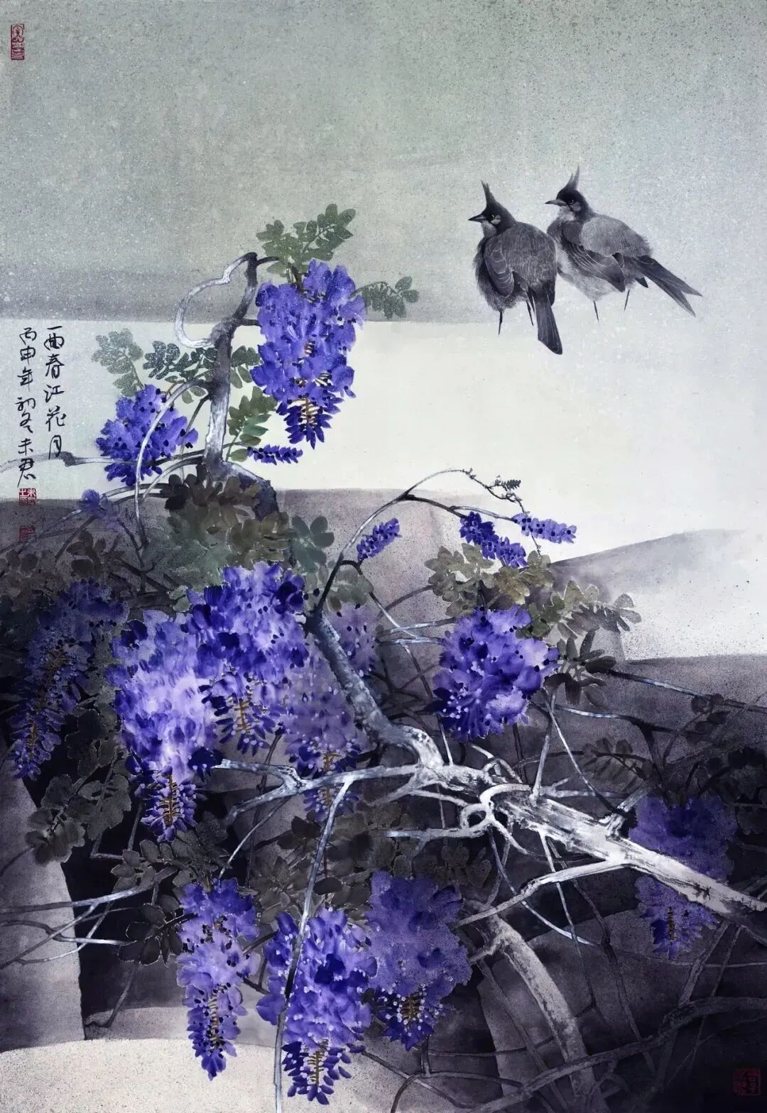 名家书画:未君 重彩花鸟画《一曲春江花月》100x70cm