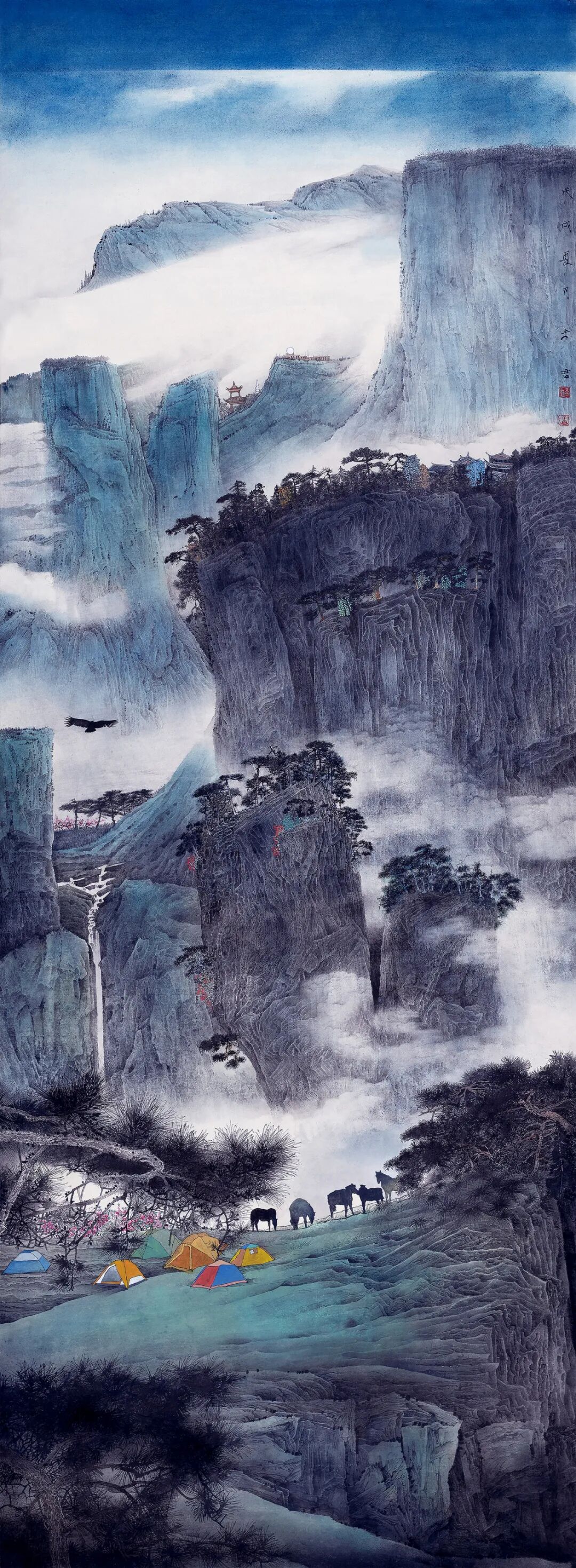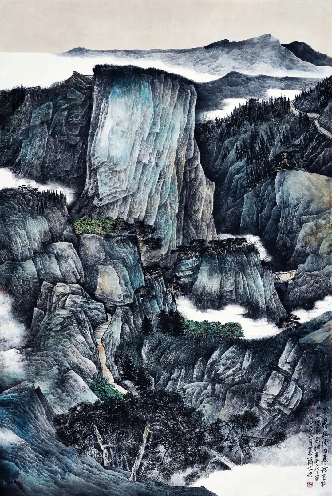 名家书画:未君 重彩山水画《艾山之巅》纸本设色145×100cm