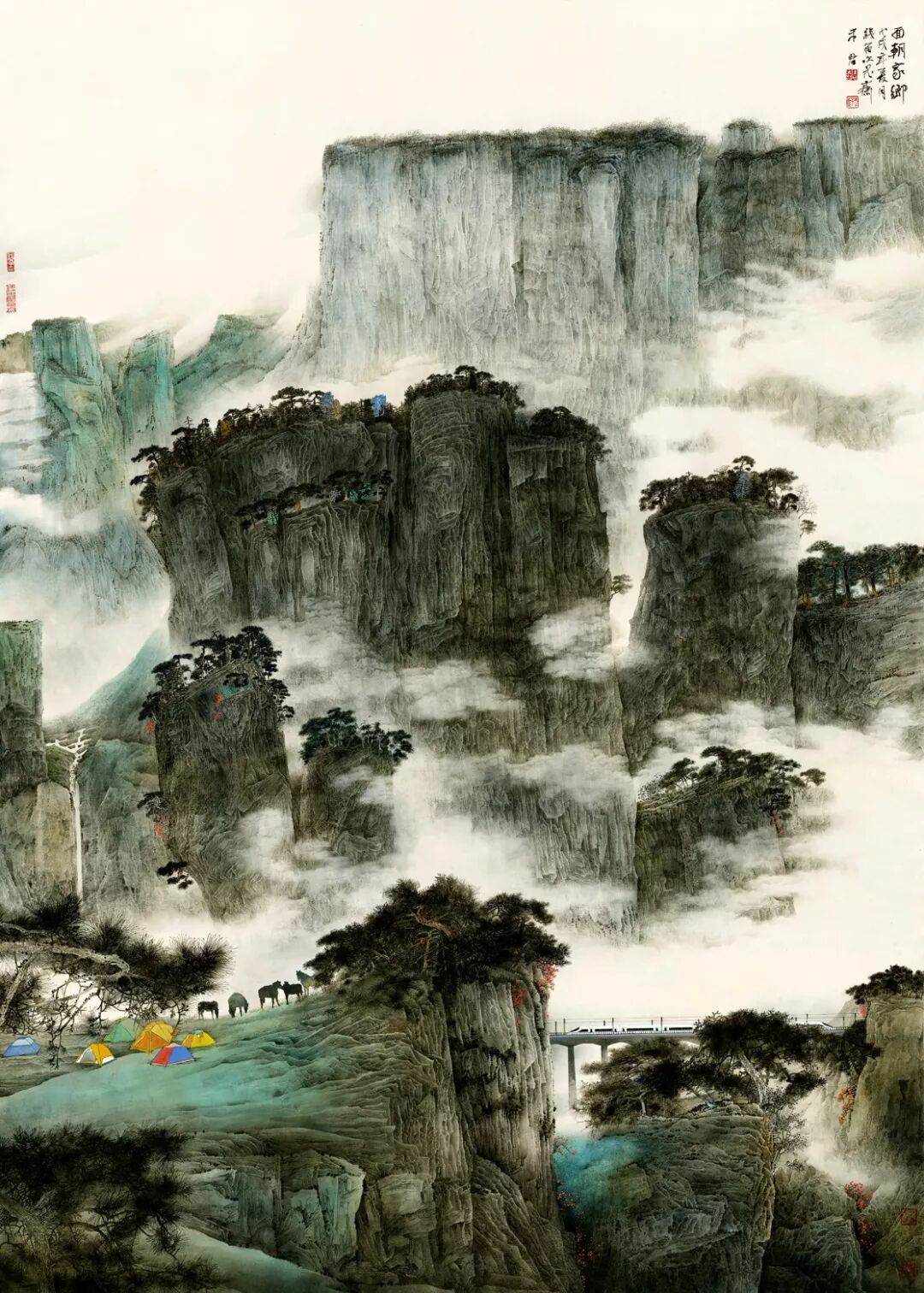 名家书画:未君 重彩山水画《面朝家乡春暖花开》227×164cm