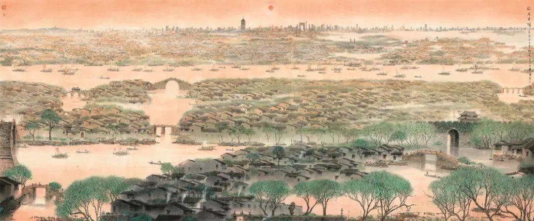 名家书画:杨明义 山水画作品 《日出之城》 280×500cm