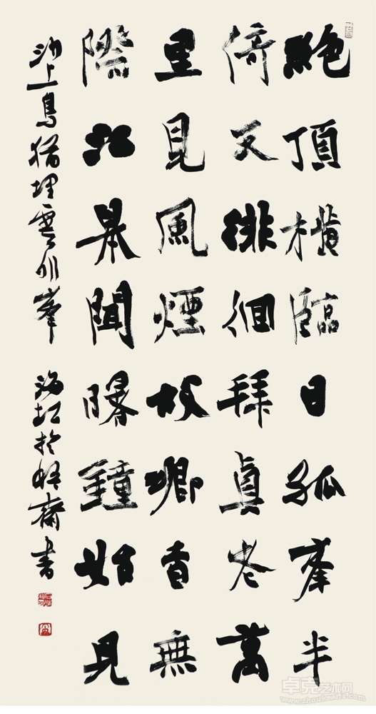 名家书画:石海松 书法作品 行书唐诗二首 68x138cm