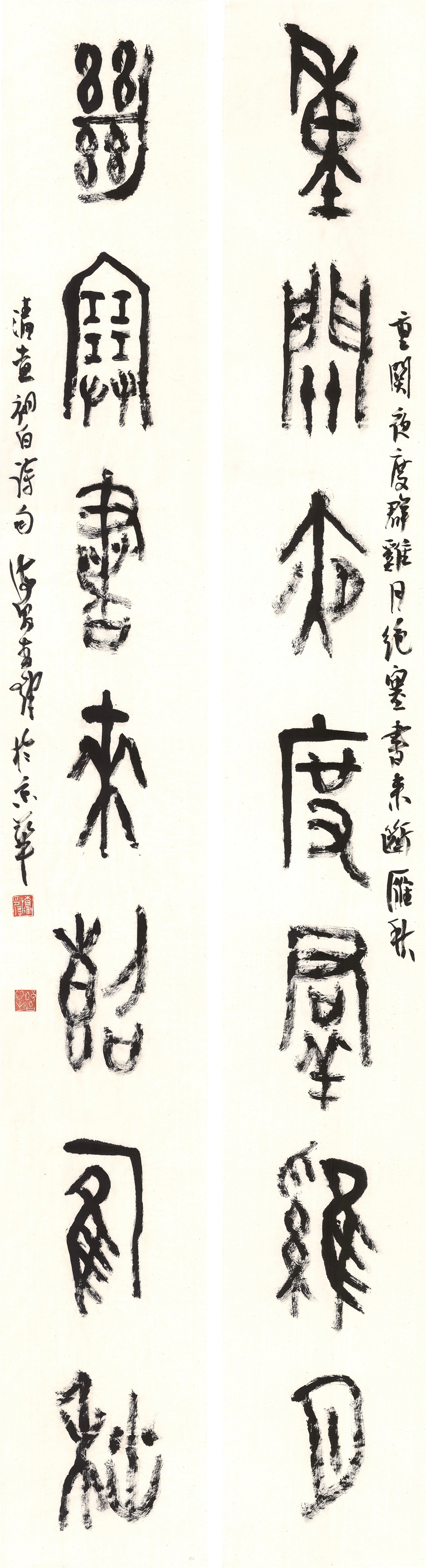 名家书画:查律 书法作品《重关绝塞联》 183×24cm×2
