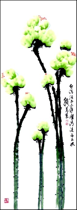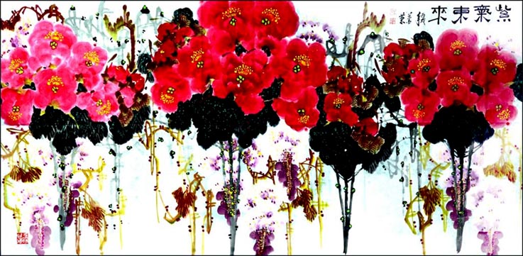 萧蕙 花鸟画 《紫气东来》88x178cm