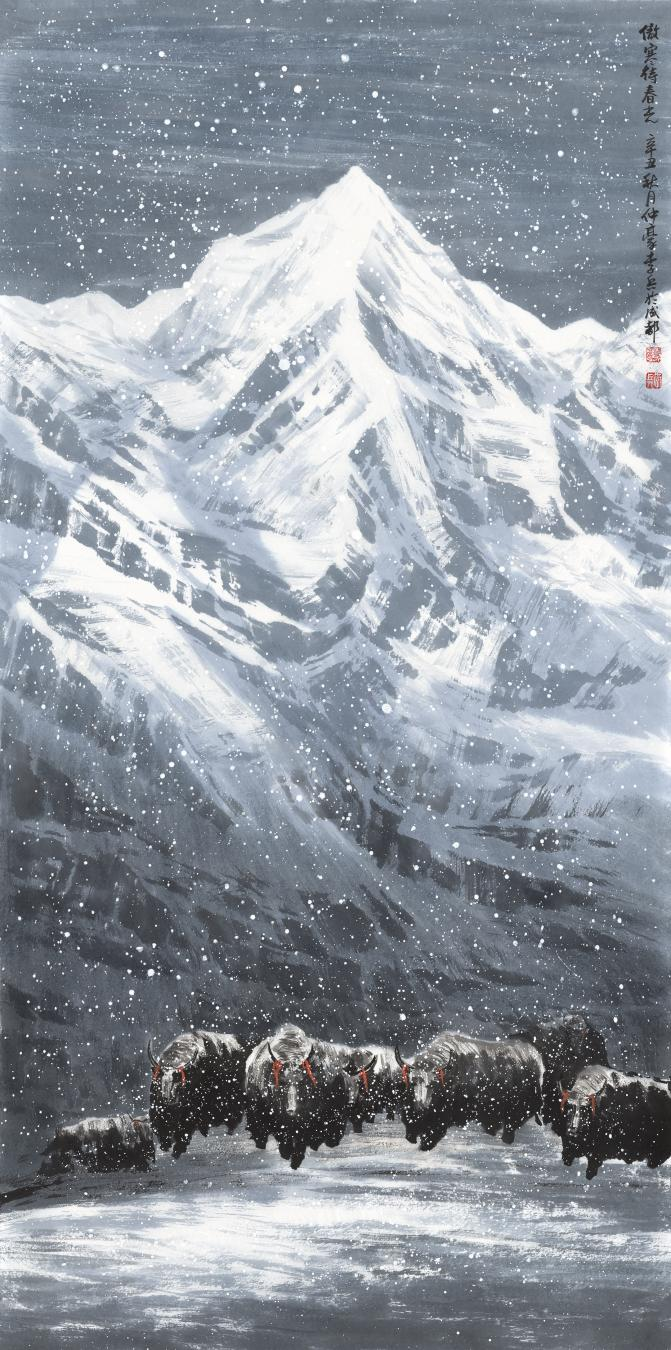 李兵,1963年生。中国美术家协会理事, 一级美术师,四川省文联党组副书记、副主席,四川省美协中国画艺委会副主任, 山水画会名誉会长,四川省政协书画院副院长,成都市美协顾问,四川省西部中国书画院院长。李兵独立探索提炼出的新皴法——“块斧劈皴”(也有人称之为“李兵冰雪皴”)和独特的“挤白”“衬白”染雪法,填补了中国水墨西域雪山画法的空白,开创了冰雪山水画的新境界,成为中国水墨雪山画体系的创立者和领军人物。