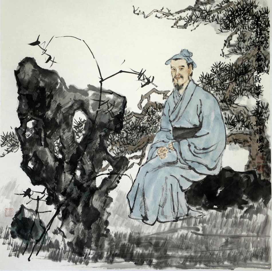 孙维国 《米颠赏石图》68cmx68cm